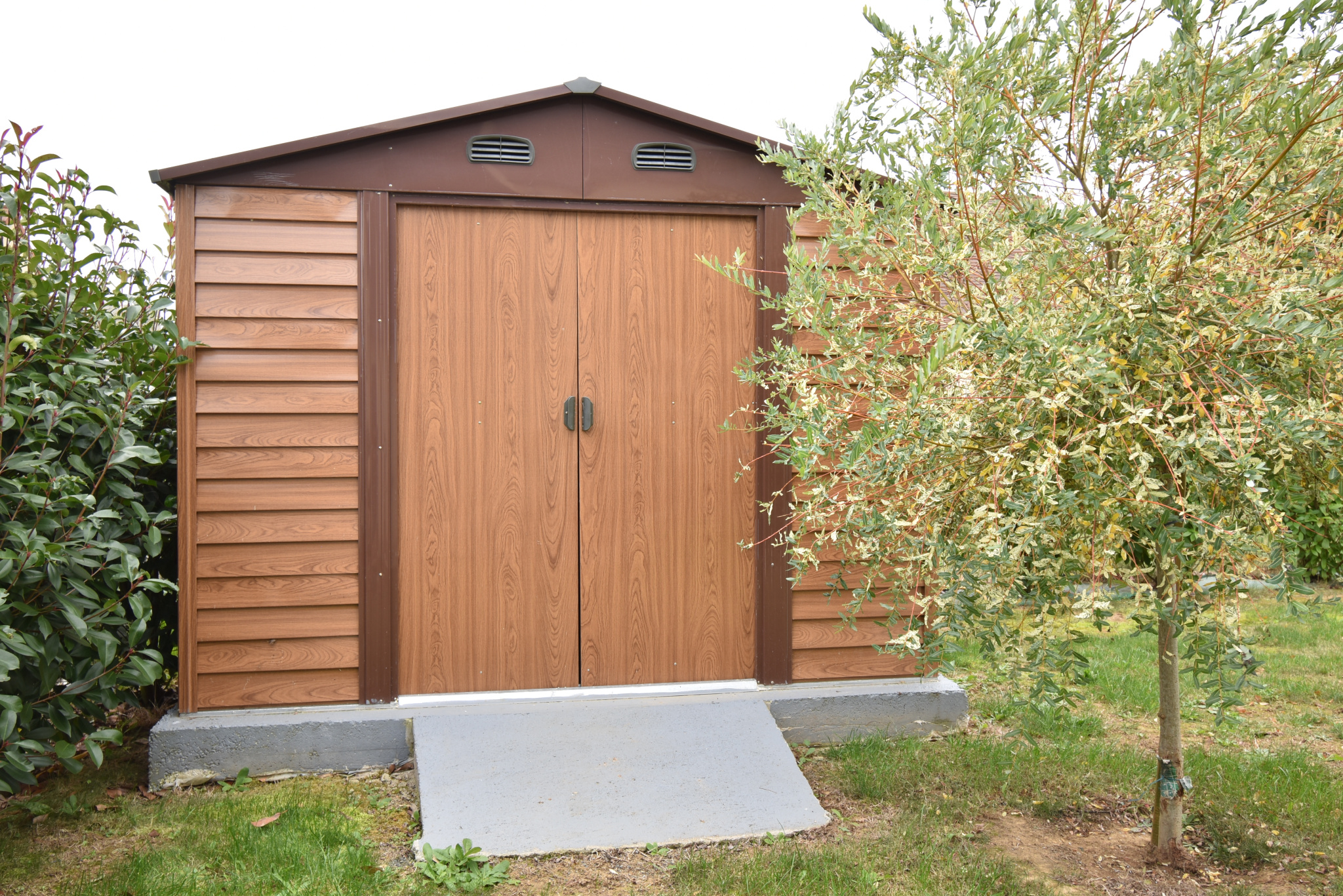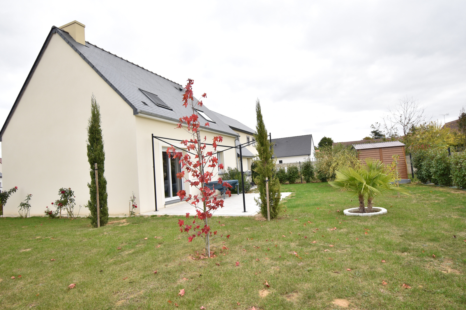 La maison offre également un garage pouvant accueillir un véhicule ainsi qu'un abri de jardin.
