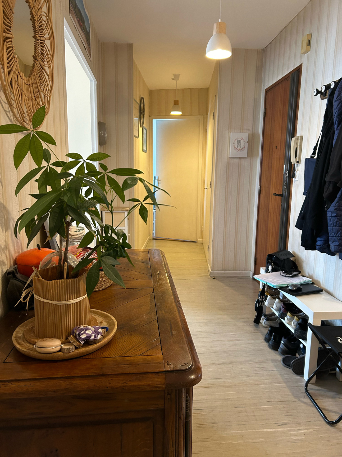 Grand espace de vie , surface au sol de 106 m², répartie en 5 pièces, dont 3 chambres spacieuses et une salle de bains, et toilette indépendant, un grand hall où vous pouvez faire une espace bureau.