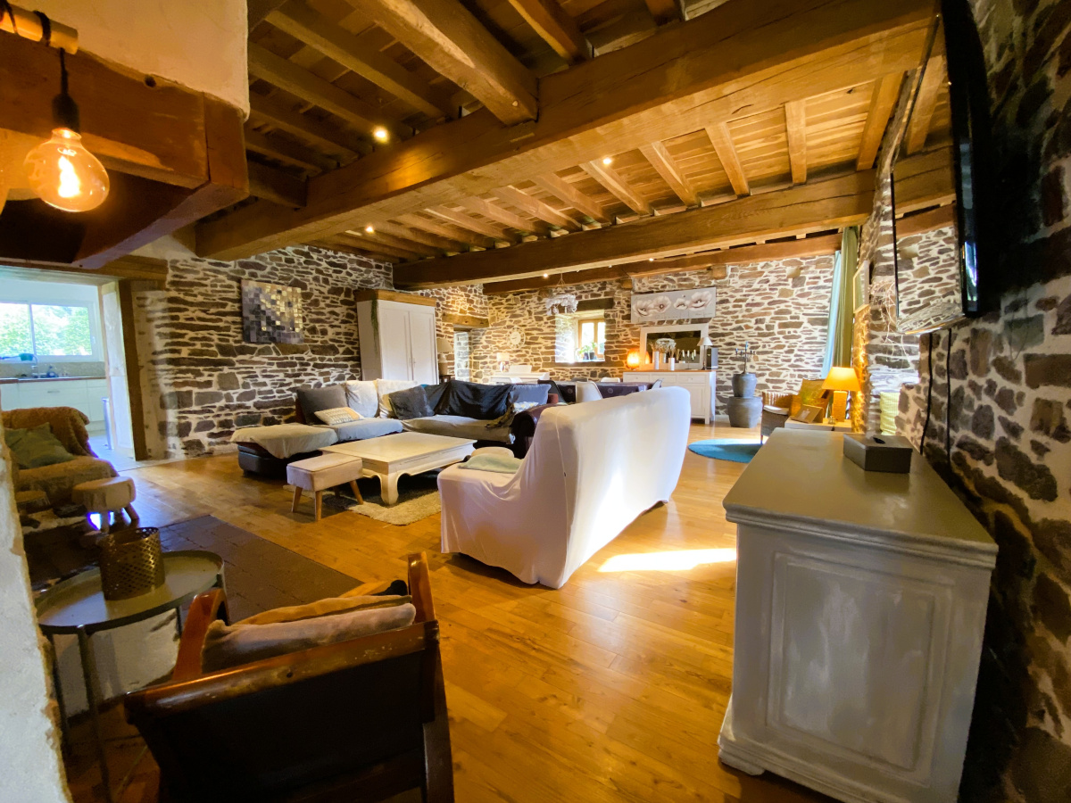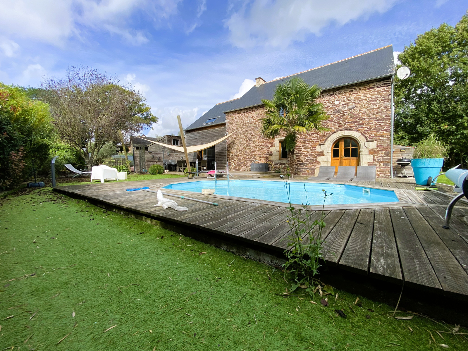 En campagne de Saint Malon Sur Mel, une belle longère entièrement rénovée, lumineuse dans un cadre verdoyant,lumineux avec de beaux esppaces. Cette belle maison vous propose une entrée, une buanderie, un bureau,un grand salon avec une belle cheminée ouverte donnant sur la piscine, une grande cuisine lulineuse qui donne sur une terrasse.A l'étage, une mezzanine, une salle de bains/salle d'eau/wc, 5 chambres, une salle d'eau/wc enfants. Un grand carport, un atelier aménagée avec deux grands greniers, le tout sur un terrain de 4456m².