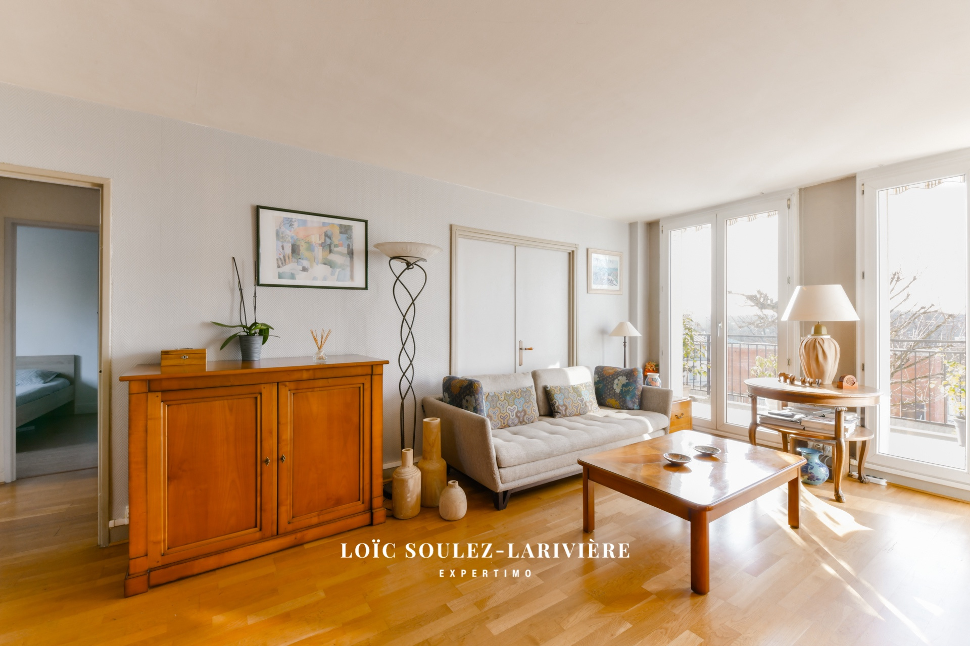 Il est aménagé comme suit : une grande pièce à vivre de près de 30m2 traversant (EST-OUEST), deux chambres, une cuisine indépendante, aménagée et équipée (possibilité de créer une cuisine ouverte sur le séjour), une salle d'eau et des toilettes. Le chauffage de l'immeuble est collectif fonctionnant au gaz. Un balcon/terrasse de 18m2 orienté plein OUEST apportant un espace exte?rieur de qualité à cet appartement appréciable pour les coucher de soleil.