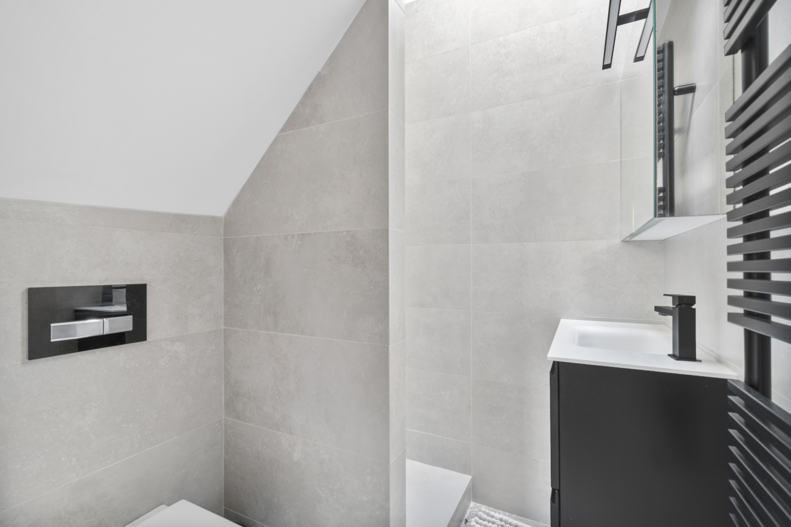 Au 1er étage : le palier optimisé avec rangements dessert une première chambre spacieuse, une seconde chambre avec sa salle d'eau privative (douche à l'italienne et WC suspendu), ainsi qu'une salle de bains indépendante avec toilettes suspendus également.