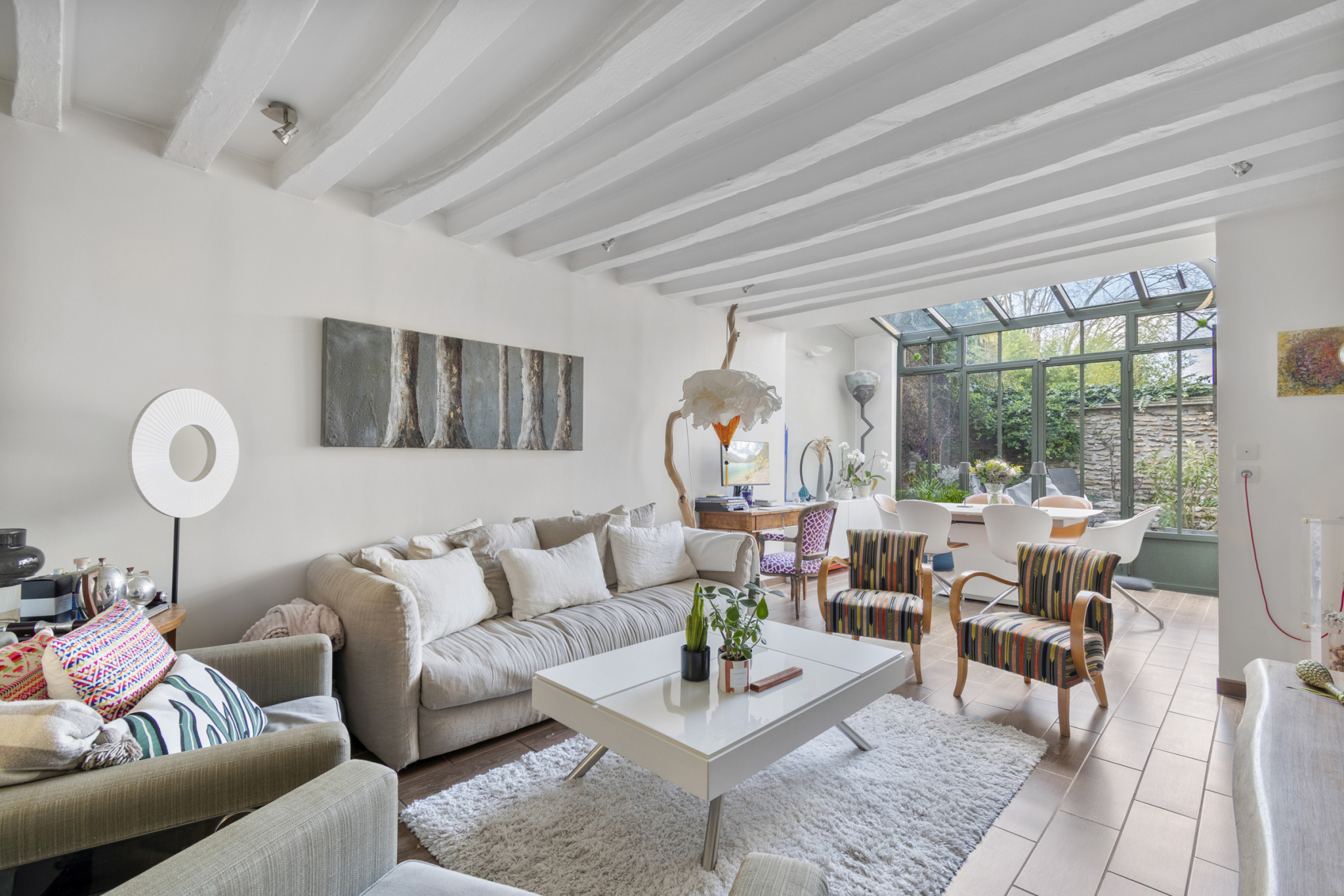 - Un coin salon chaleureux aux poutres apparentes, véritable cocon d'intimité.