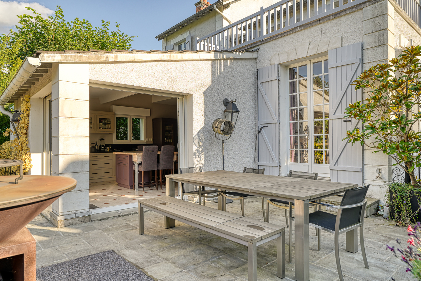 Cette magnifique meulière de 1910, rénovée et agrandie avec goût, vous séduira par ses prestations haut de gamme et son charme intemporel. D'une surface habitable de 227 m² environ, elle offre :