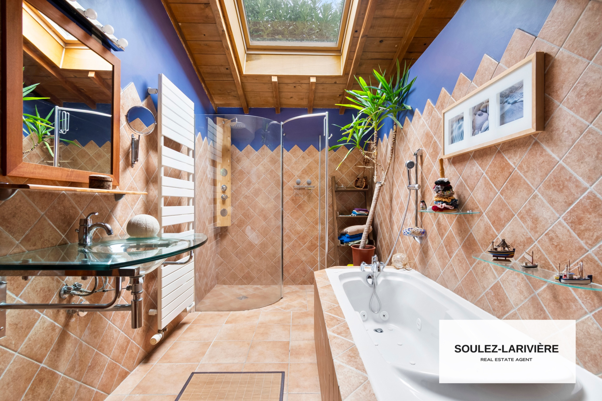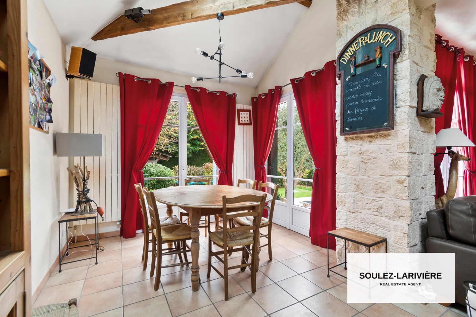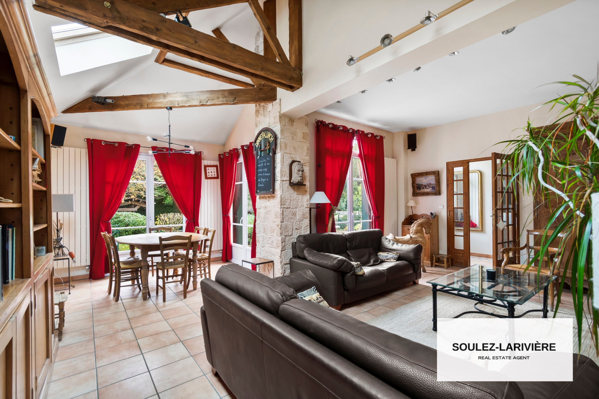Elle se compose de quatres niveaux. Au rez-de-chaussée, vous trouverez une entrée avec dressing, une grande pièce de réception avec une hauteur cathédrale et ses poutres apparentes. Cette grande pièce comprends un salon avec une cheminée fonctionnelle et une salle à manger. Elle donne accès à une terrasse de 25m2 et un beau jardin paysagé exposé S/O sans vis à vis. Une cuisine est aménagée et équipée (possibilité de créer une cuisine ouverte) qui bénéficie d'un accès à une seconde terrasse intime entourée de verdure. En complément, vous trouverez un bureau ou chambre, un wc sur ce même niveau. En rez-de-jardin : une suite parentale de + de 25m2 avec salle de bains et accès direct à un patio. Au premier étage, un palier desservant deux grandes chambres (dont une avec salle d'eau), une salle de bains et un wc indépendant. Au deuxième étage, sous les combles aménagés : une chambre, une salle de jeux ou espace bureau. En rez-de-terrasse, vous retrouverez deux autres chambres (semi-enterré) avec salle d'eau. Un sous-sol entièrement aménagée comprenant une salle de jeu avec un bar, une salle de musique ou salle de sport d'une superficie de 45m2 ainsi qu'une buanderie, un cellier, une cave à vins et des espaces de rangement.
