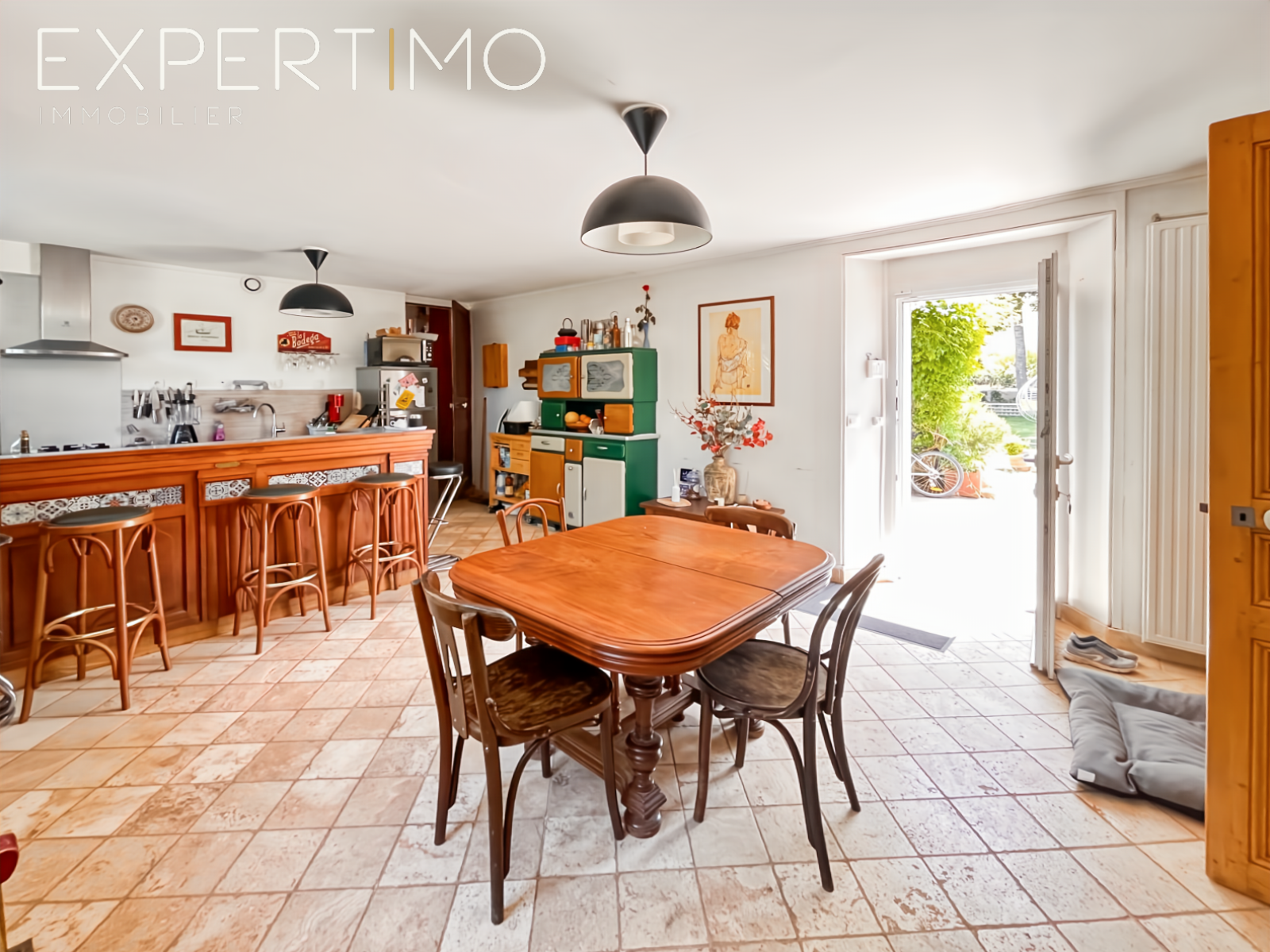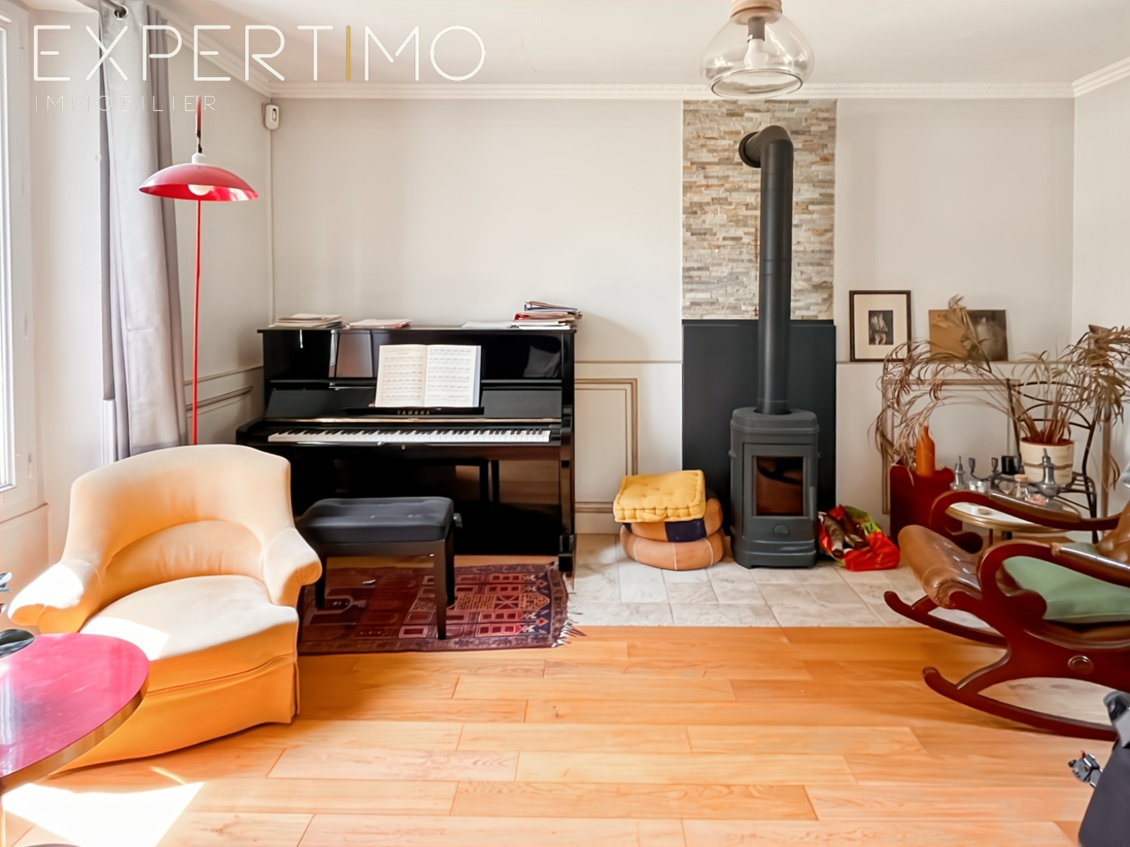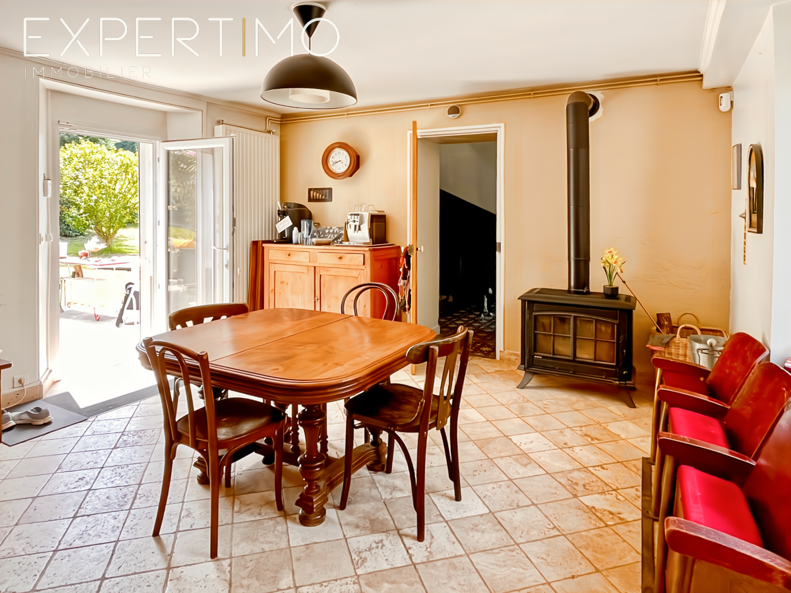 • Pièce de vie de 27 m² avec cuisine, séjour et poêle à bois