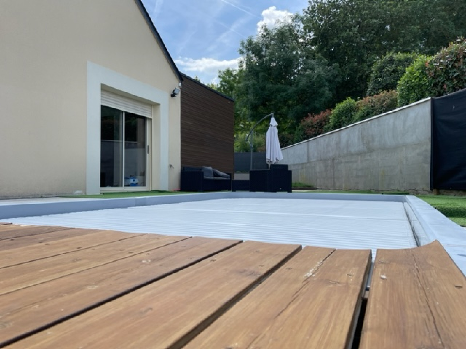 A l'extérieur une piscine chauffée par pompe à chaleur (le terrassement reste à faire), un cabanon en parpaings,