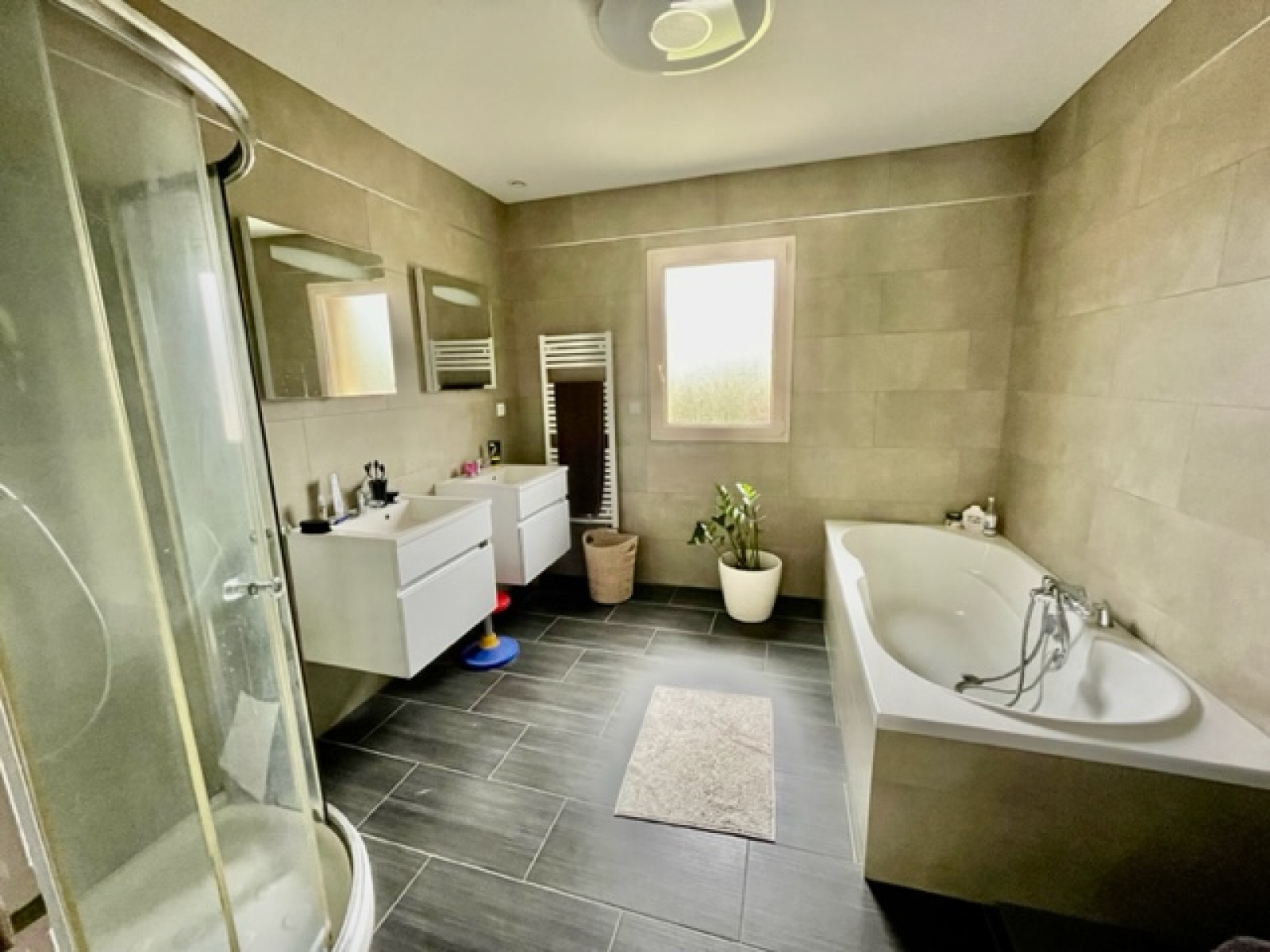 Elle propose 4 chambres dont 2 au rez de chaussée avec salle de bain et espace bureau,