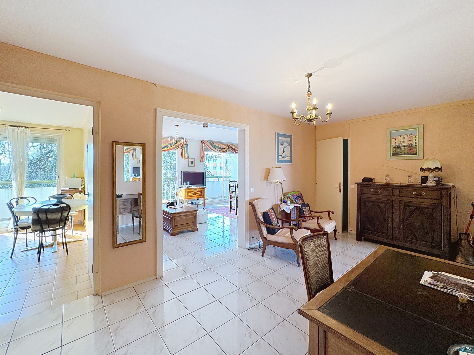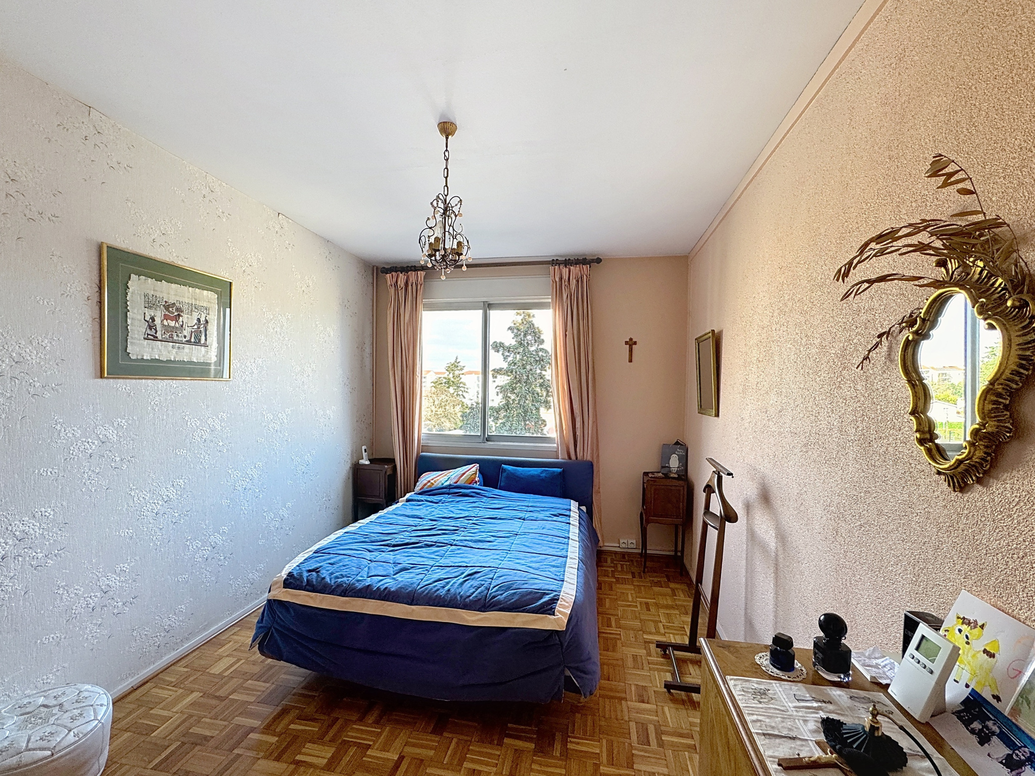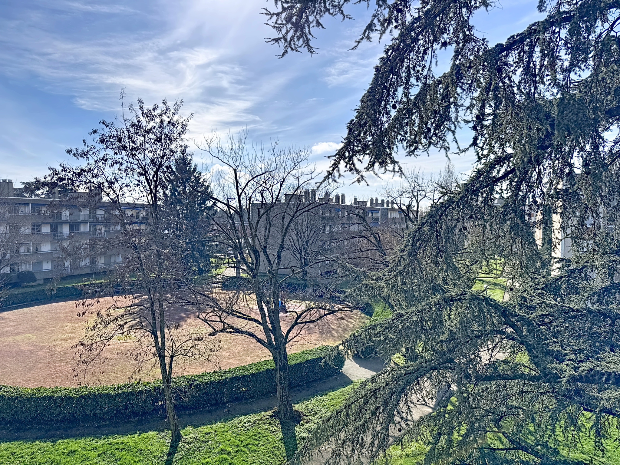 À vendre : spacieux T4 dans un cadre verdoyant et paisible à Bron, idéalement situé au pied du tramway, dans la résidence arborée et sécurisée du Mas Rebufer (immeuble ravalé récemment) et dotée d'un ascenseur. Cet appartement au 3éme étage sur 4, offre un cadre de vie privilégié, alliant tranquillité et proximité des commodités. Entièrement en retrait de la rue et niché au coeur d’un vaste parc boisé, ce T4 lumineux et fonctionnel vous séduira dès l’entrée qui dessert astucieusement toutes les pièces pour une circulation fluide et optimisée. Caractéristiques principales : Un double séjour lumineux de 24 m² avec un carrelage récent, couleur crème qui apporte beaucoup de luminosité, ouvert sur un agréable balcon de 11 m² et idéal pour profÃter d’un extérieur apaisant, deux chambres confortables de 11 m² et un dressing spacieux de 4,47 m². Cuisine séparée, facilement transformable en cuisine ouverte pour une pièce de vie moderne de 34 m². Salle de bain et WC indépendant. Chauffage collectif sol pour un confort thermique optimal. Prestations supplémentaires : grande cave saine avec sol bétonné, parfaite pour le stockage, local à vélos sécurisé. Possibilité d'acquérir un stationnement couvert en sous sol en sus du prix.
