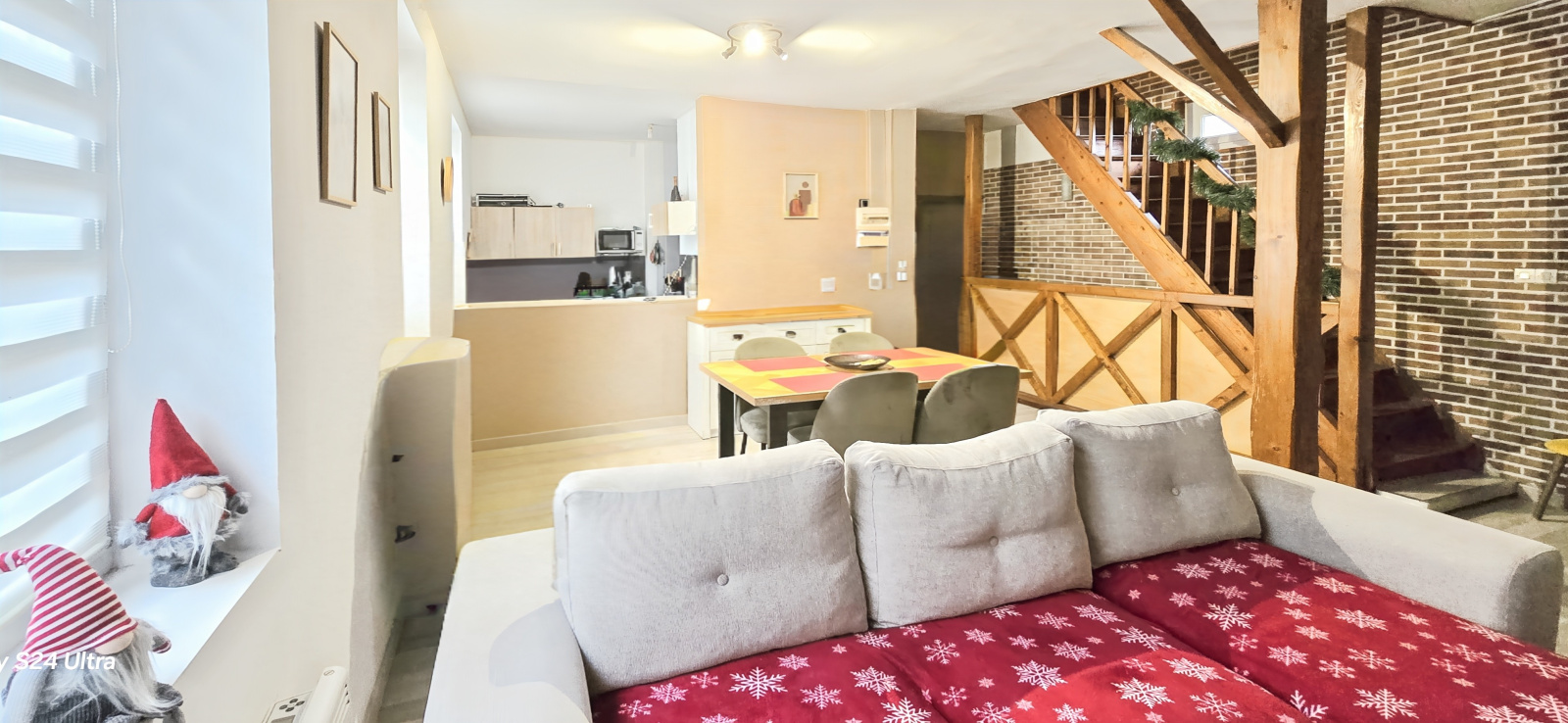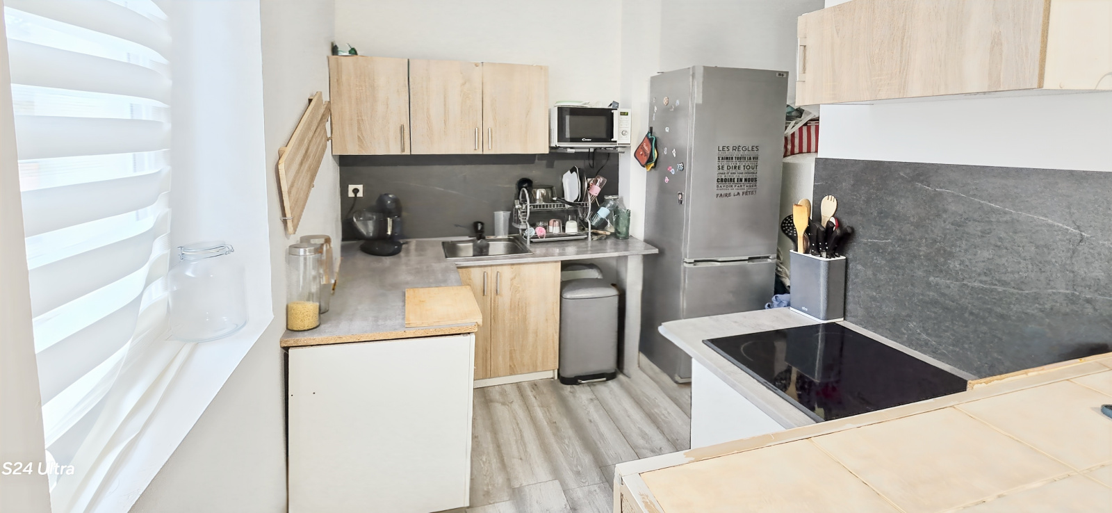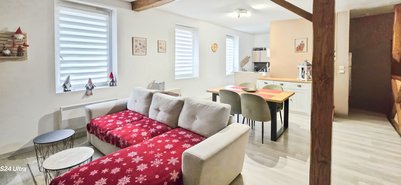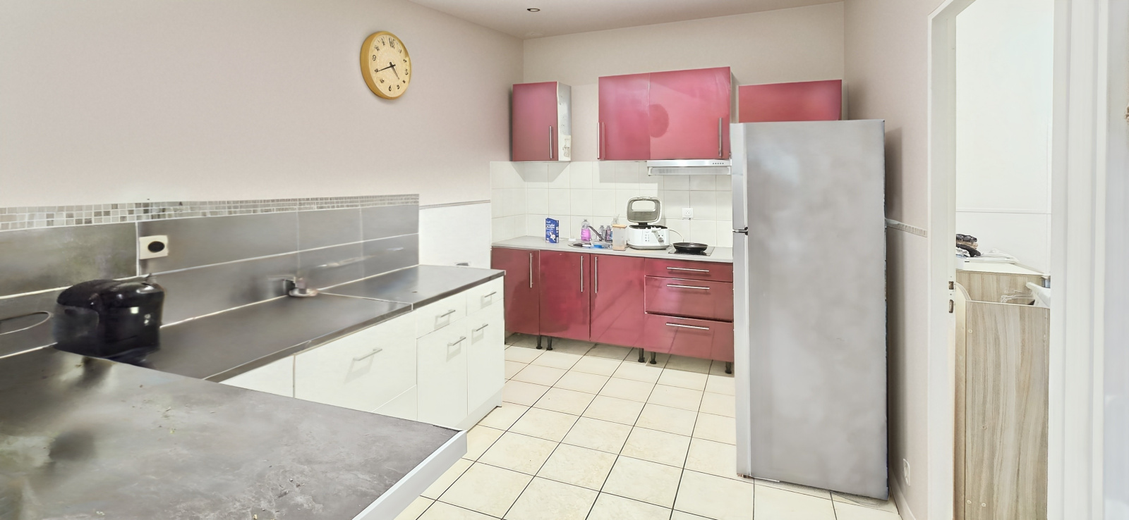 - Pour commencer, un plain-pied de 56 m²: Une belle cuisine meublée, un séjour lumineux, 2 chambres, une cour privative, il est actuellement loué 530 euros.