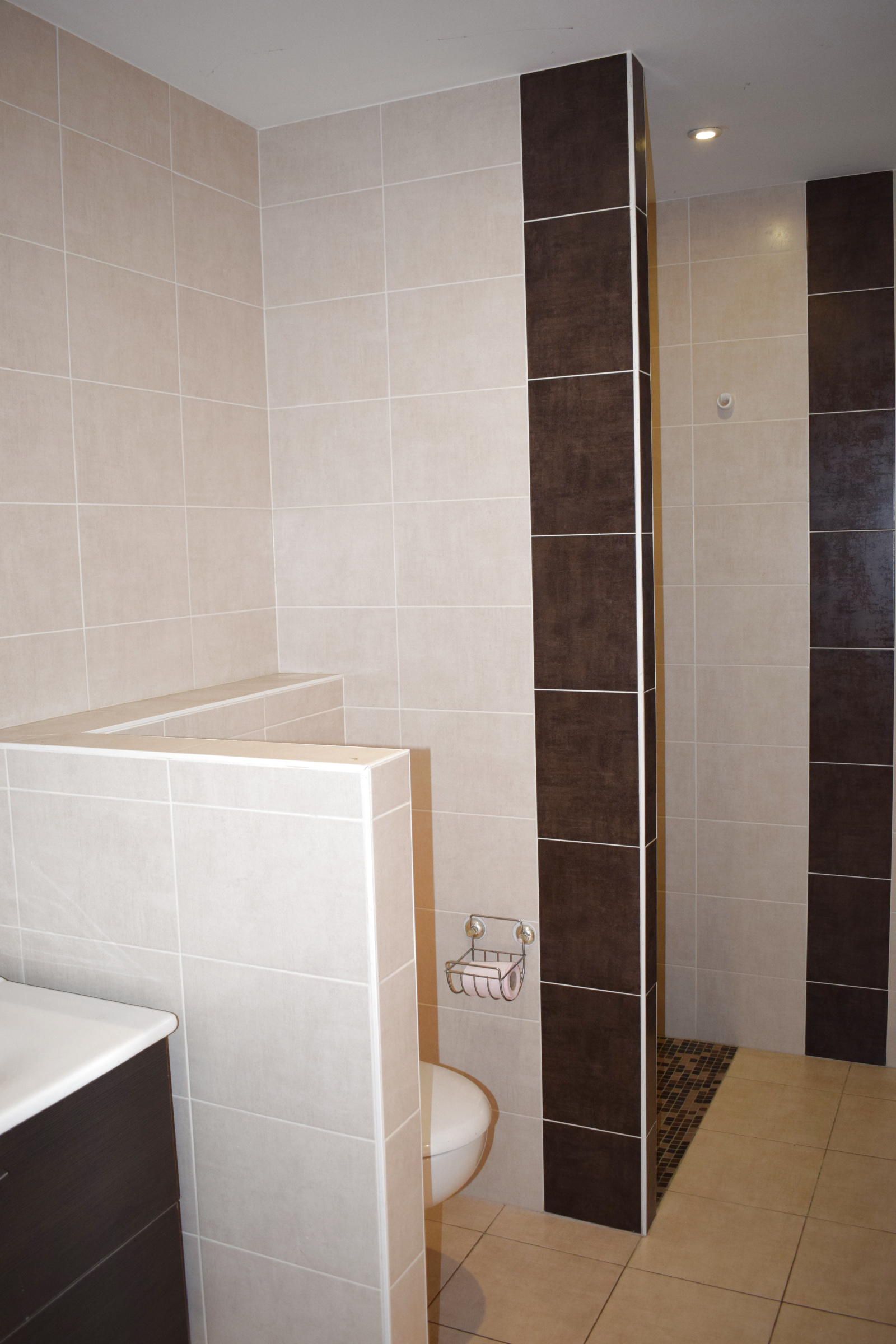Elle se compose au rez-de-chaussée : une cuisine,un salon séjour,une chambre et une salle de bain entièrement refaite à neuf,avec carrelage moderne et douche italienne.