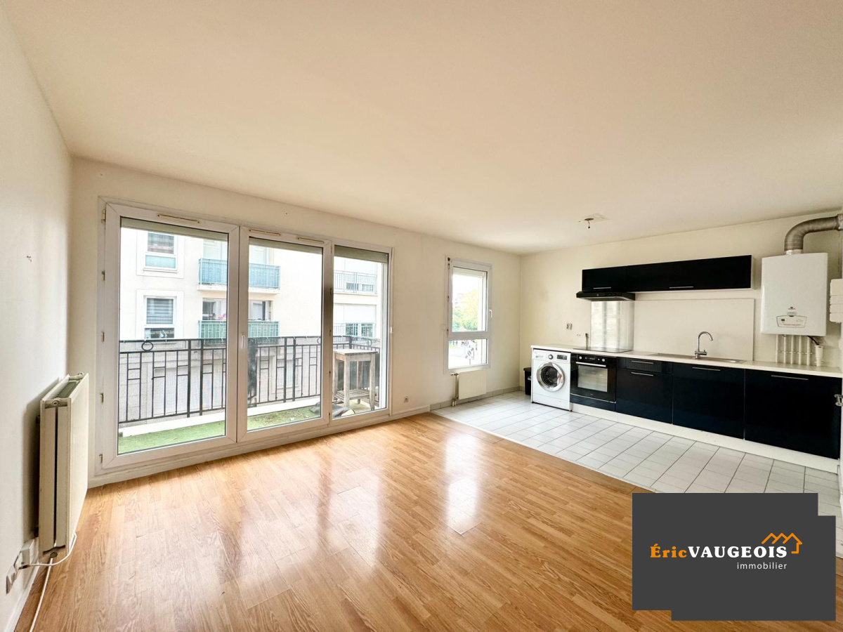 SOUS COMPROMIS DE VENTE !!! En EXCLUSIVITÉ de l'agence! Éric VAUGEOIS immobilier. Éric VAUGEOIS vous propose à deux pas du centre ville de Bussy-Saint-Georges (77600) proche du RER A, ce bel appartement lumineux exposé plein sud de type F2 de 49 m² environ au premier étage d'un immeuble sécurisé avec une place de parking privative en sous-sol (boxable). Il se compose : Entrée avec placards - Séjour lumineux ouvert sur Cuisine aménagée et équipée - Dégagement - Chambre - Salle d'eau avec grande douche et meuble vasque - WC séparé - Balcon. Équipements : Fenêtres PVC double vitrage. Volets roulants motorisés. Chauffage central et Production d'eau chaude par chaudière gaz de ville indépendante. A visiter sans tarder !