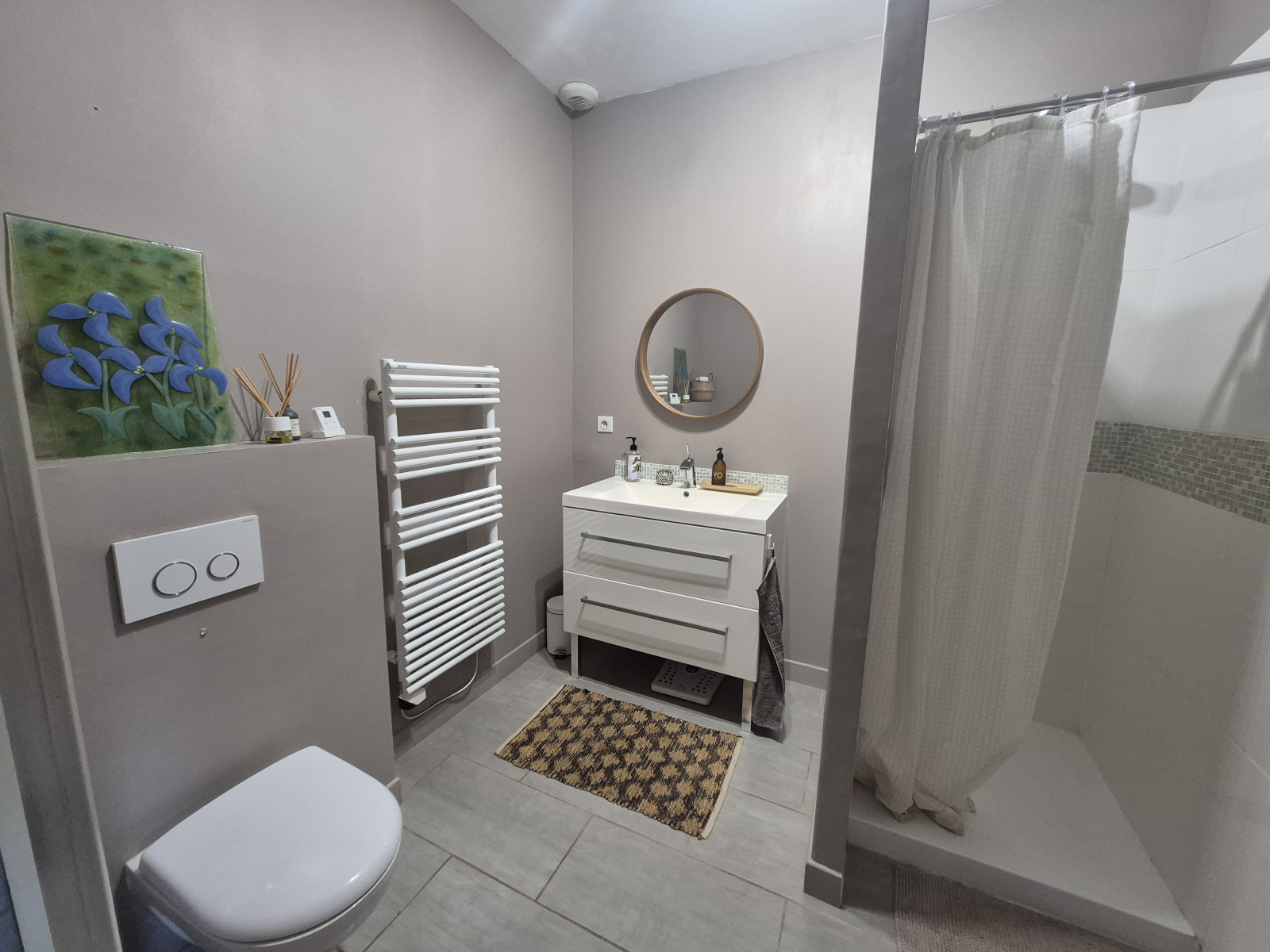 Prestations : Climatisations réversibles + radiateurs électriques à basse consommation, VMC, menuiseries aluminium double vitrage dont une à galandage, volets bois, gouttières zinc, visiophone, interphone, fibre, alarme, adoucisseur, très bonne isolation (intérieure et extérieure), bassin en pierre chauffé, pergola.