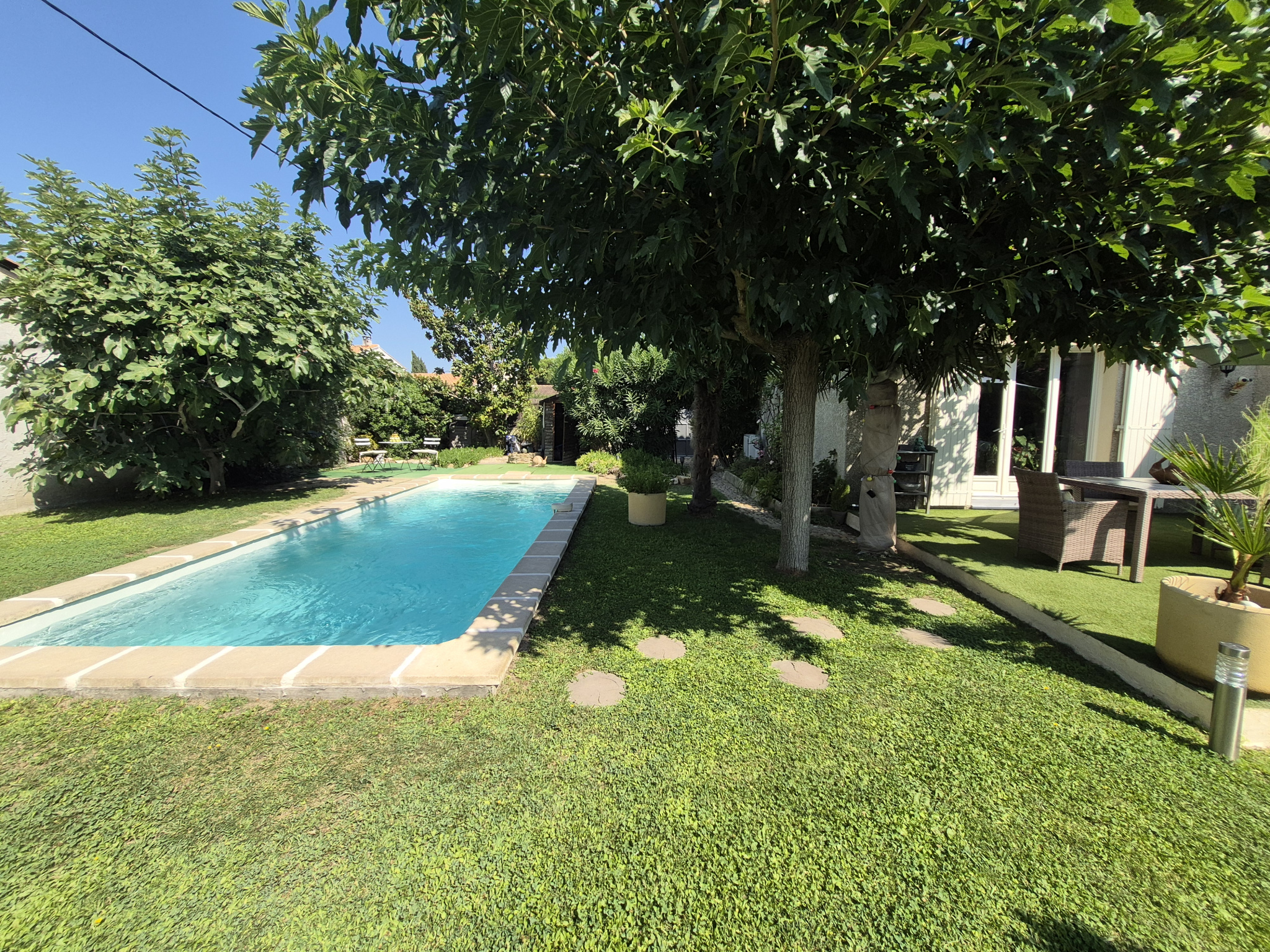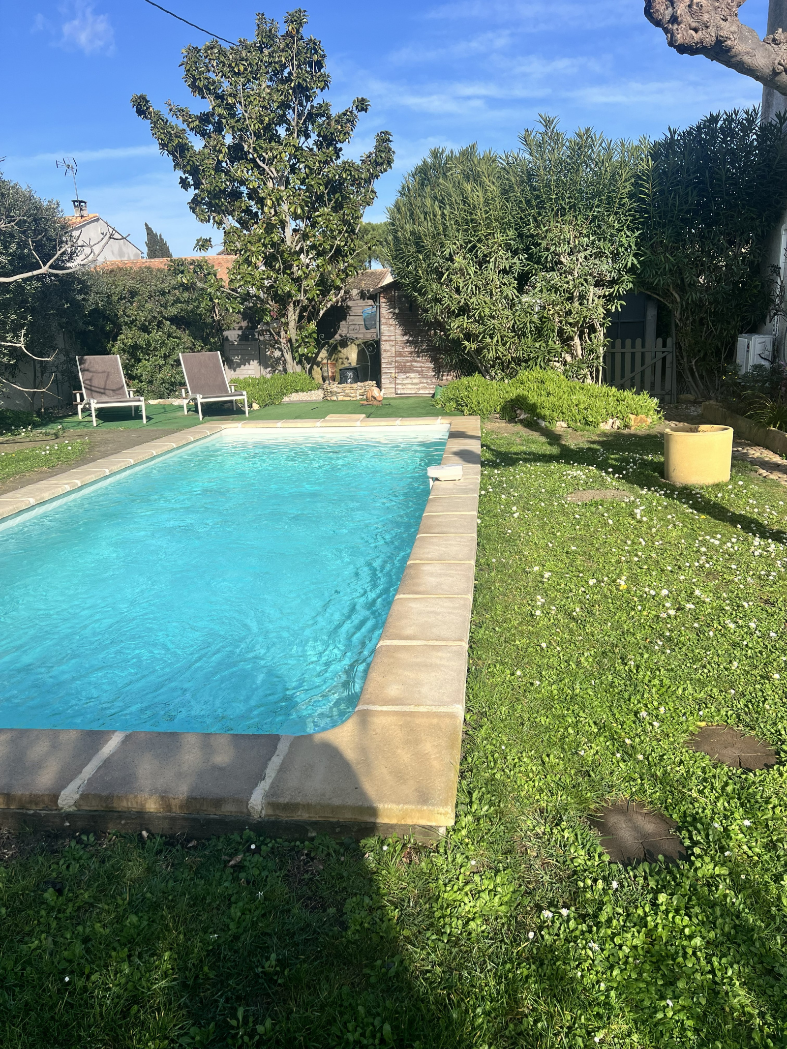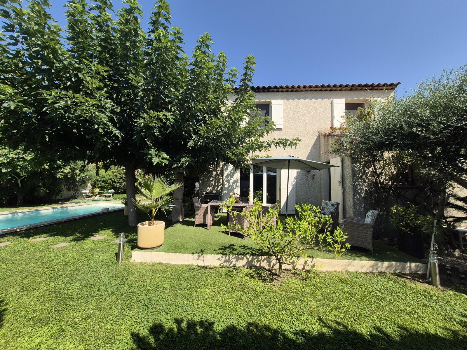 Dans quartier résidentiel très calme, à l'abri des regards, venez découvrir cette charmante villa (année 2001) de 105 m2 implantée sur un beau terrain arboré et clôturé de 500 m2 avec piscine de 3x7. La maison R+1 offre au rez-de-chaussée : une pèce de vie de 34 m2, une cuisine séparée équipée, un grand cellier, un w.c. indépendant et un garage attenant de 14m2 permettant de créer une chambre au rez-de-chaussée ; l'étage comprend 3 chambres et une salle de bains avec w.c. Un beau carpot permet d'accueillir 3 véhicules à l'intérieur et encore du parking avec la belle aire de parking au Nord. Cette propriété est un véritable havre de paix !