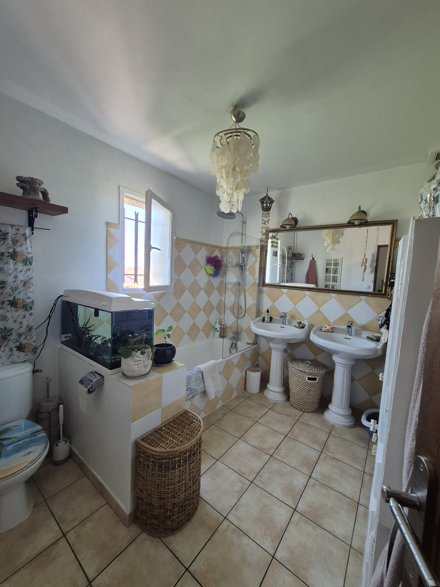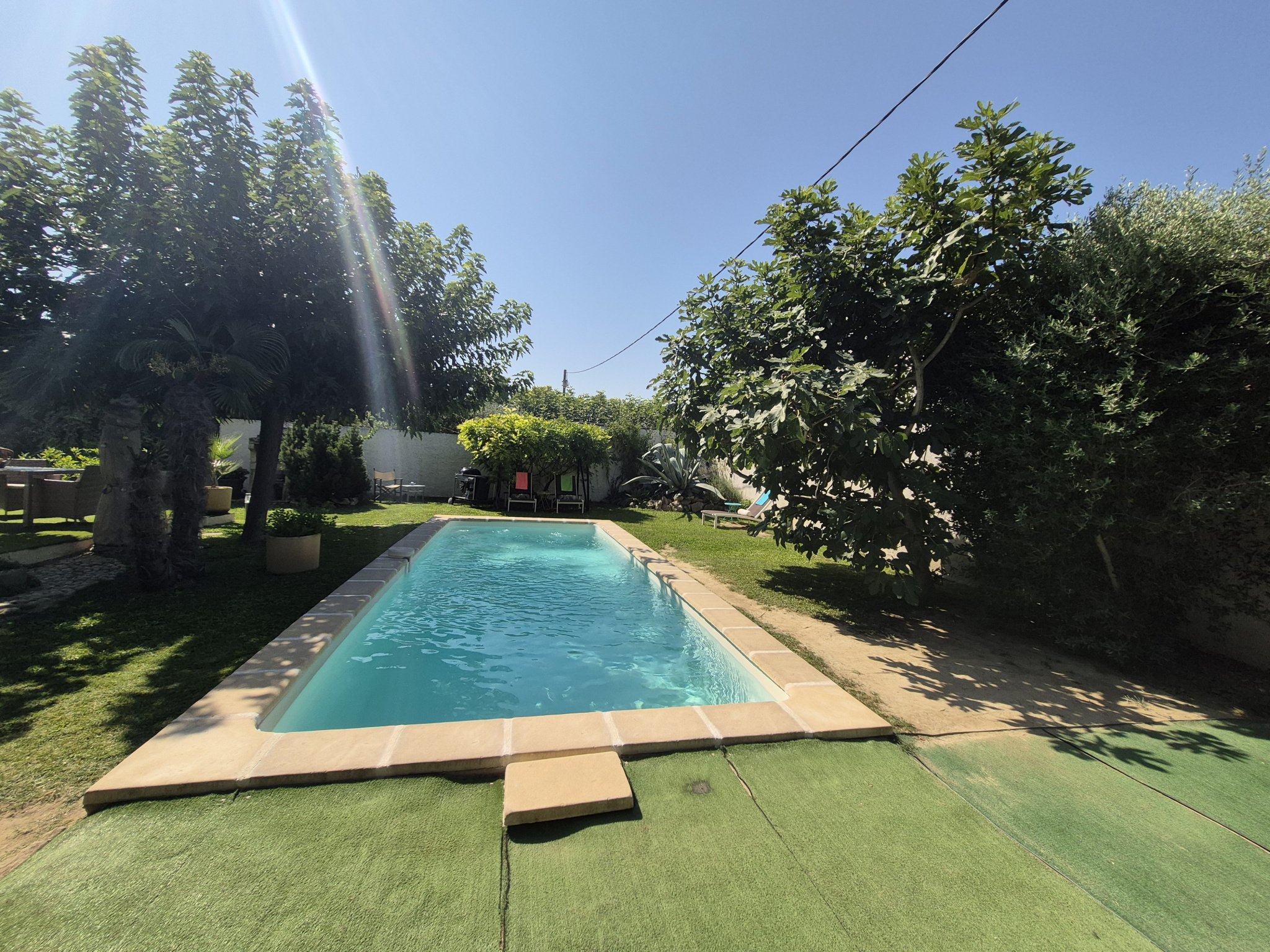 Prestations : menuiseries PVC double vitrage, volets bois, climatisations réversibles, alarme, eau de ville, + forage, tout à l'égout.