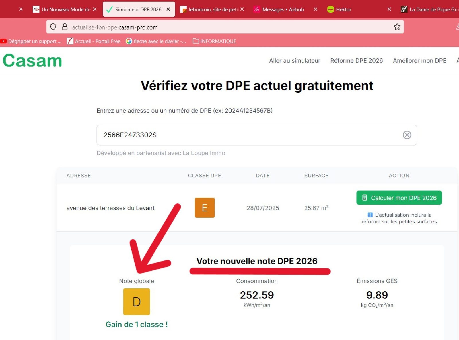 - DPE : E Passe en D au 01/01/2026 nouvelle réglementation – passe en C si installation climatisation réversible (écrit du diagnostiqueur)