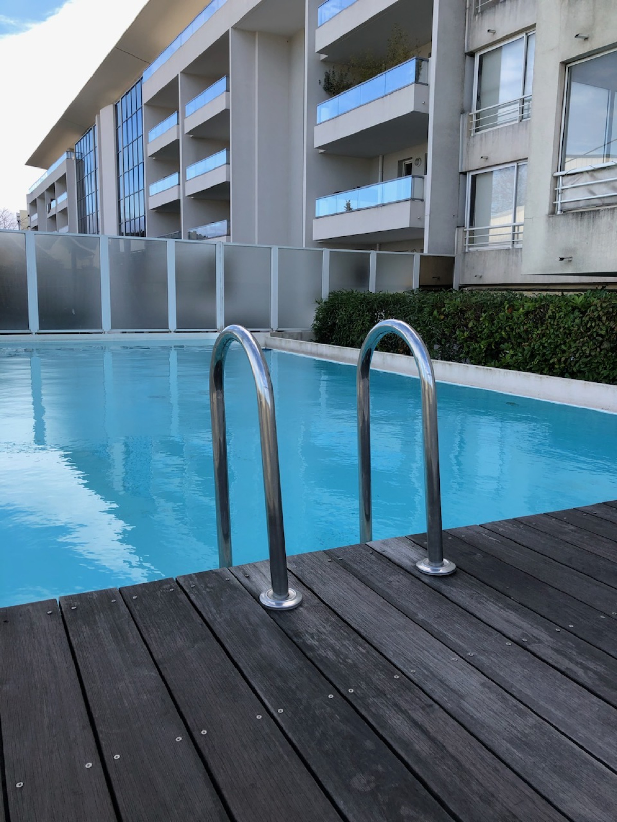A 5 minutes à pied de la plage et des commerces, dans une très belle résidence de 2001 sécurisée avec piscine, très beau 3 pièces de 77 m2 avec 2 grandes loggias et possibilité d'acheter un garage fermé en sous-sol.