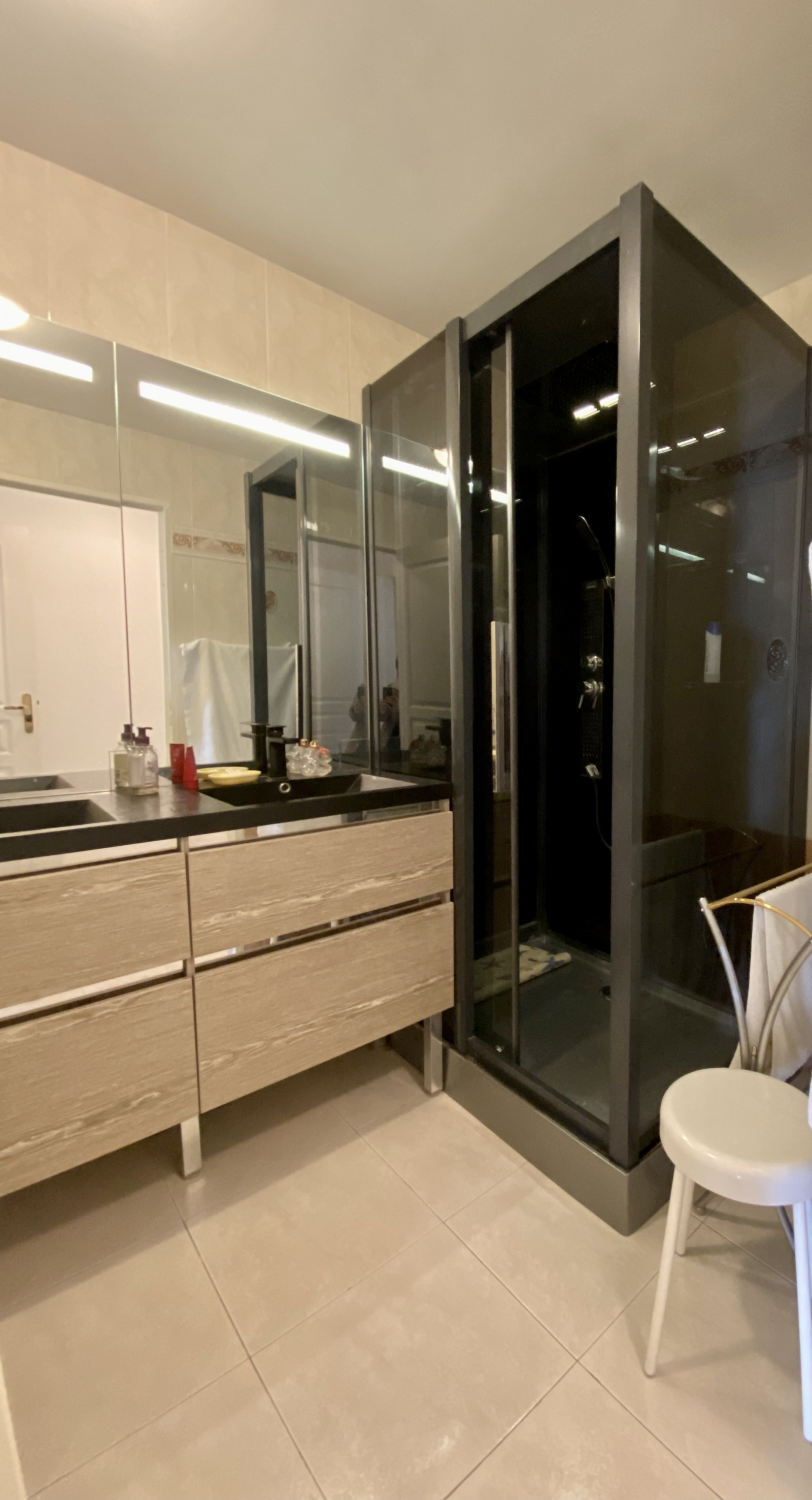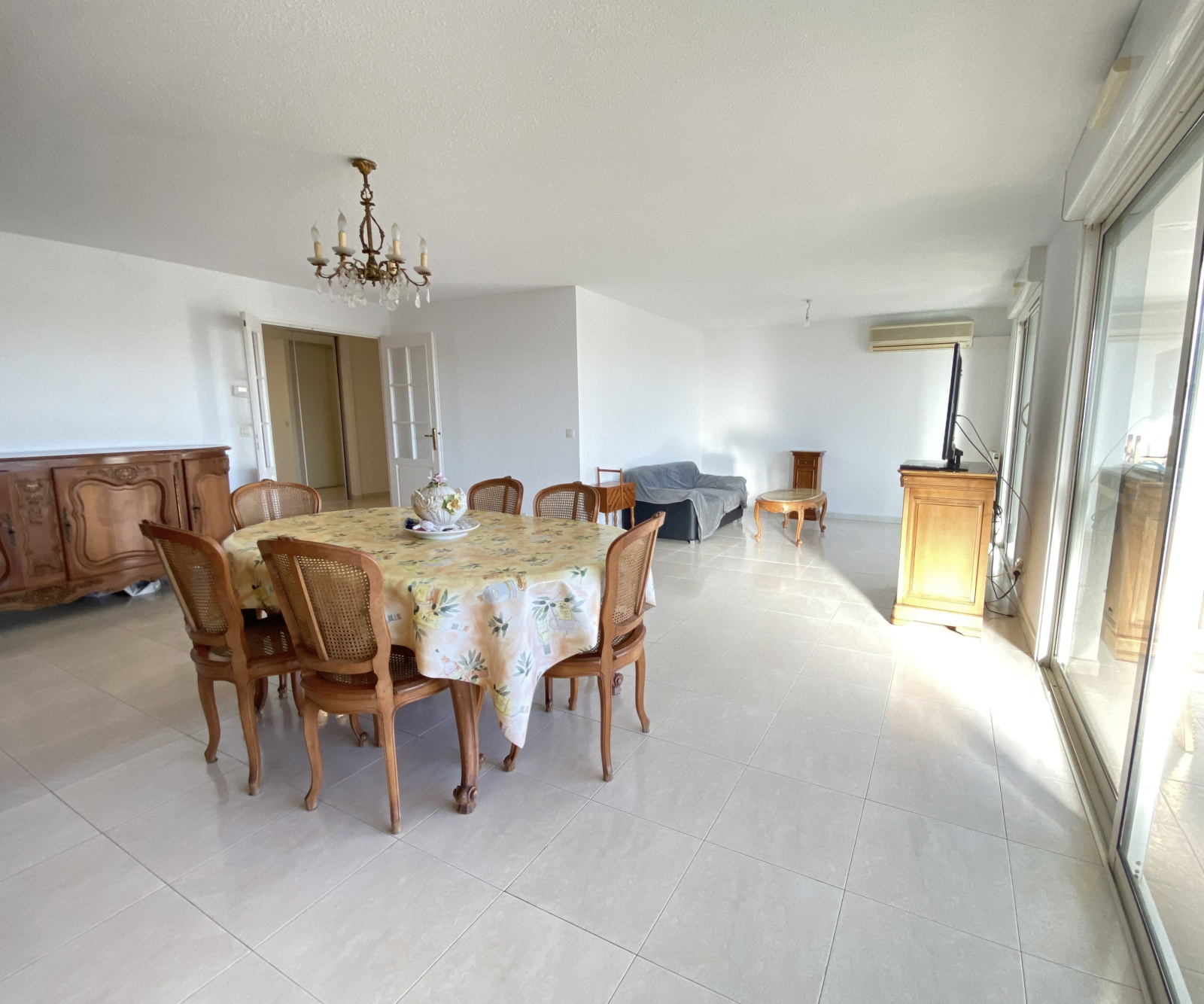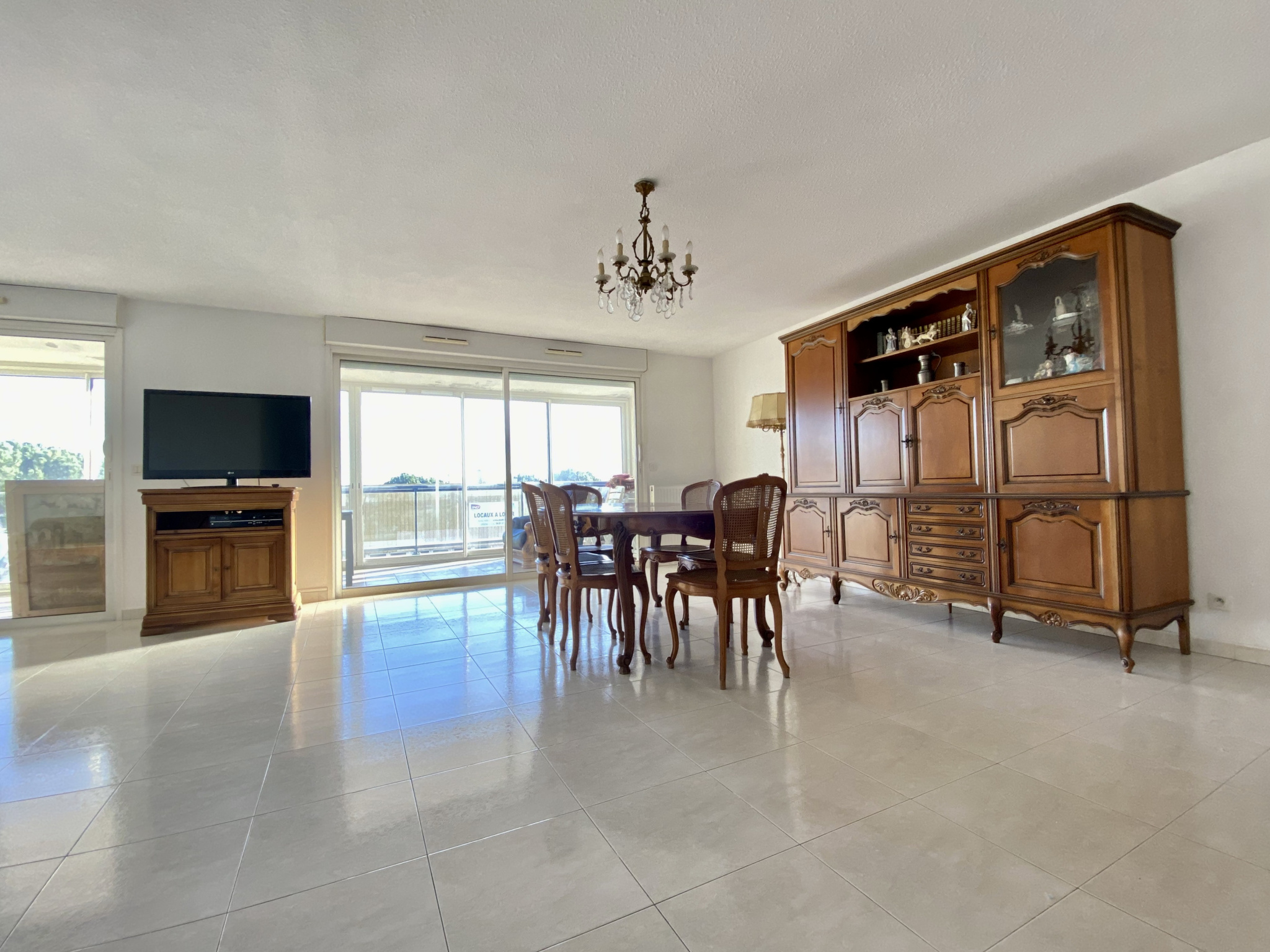 Il se compose d'une entrée, d'un très grand séjour de 38 m2 exposé sud avec terrasse de 17 m2 environ, une cuisine séparée équipée avec loggia fermée, 2 belles chambres (il suffit de poser une cloison pour faire la 3ème chambre), une salle d'eau et un wc séparé.