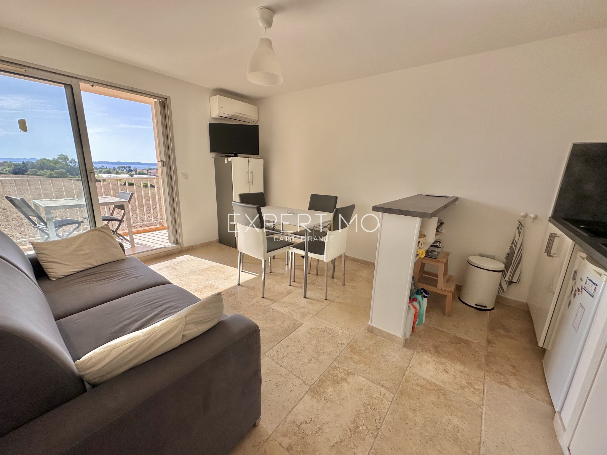 Quartier résidentiel Le Saint-Vincent - Entre le centre-ville de Carqueiranne et la Mer - Appartement Type 2 rénové avec vue dégagée sur la mer jusqu'à la Presqu'île de Giens - Superficie habitable de 30m2 - Terrasse de 8m2 - Place de parking privée et local à vélo en annexe - Proche de toutes commodités. À SAISIR !