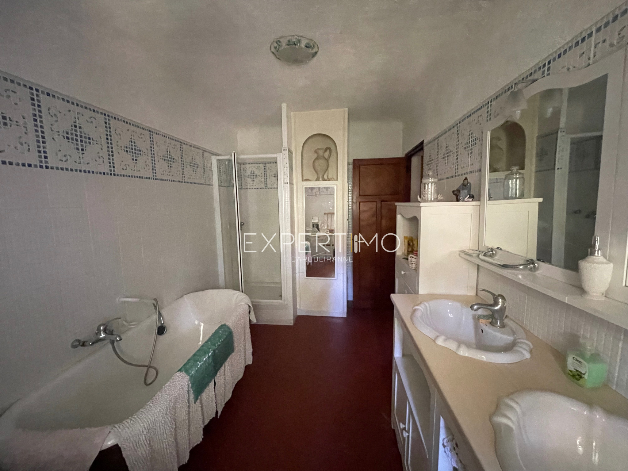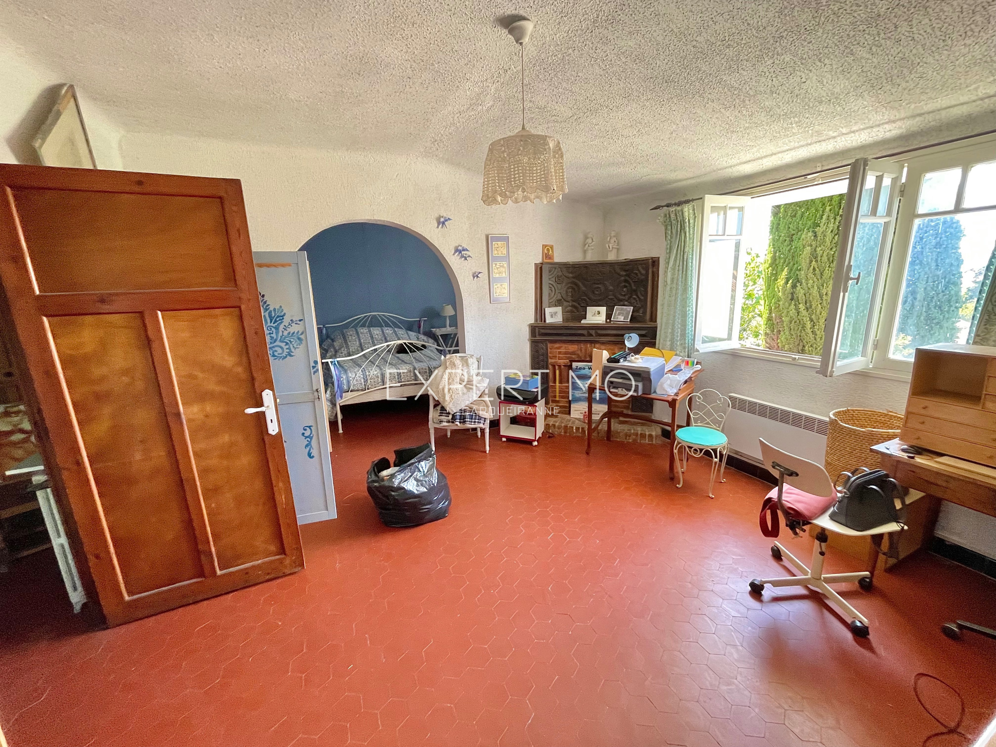 Dans un quartier résidentiel calme, verdoyant et proche des commodités - Mas provençal composé de 2 lots aux dimensions uniques à rénover - Superficie habitable de 336m2 - Avec 11 pièces et 6 chambres - Possibilité de revendre ou de louer un lot (une mitoyenneté par le garage) - Belle vue mer à l'étage - Exposition Sud - Terrain plat de 930m2 - Grand garage - Piscinable - À SAISIR !Â
