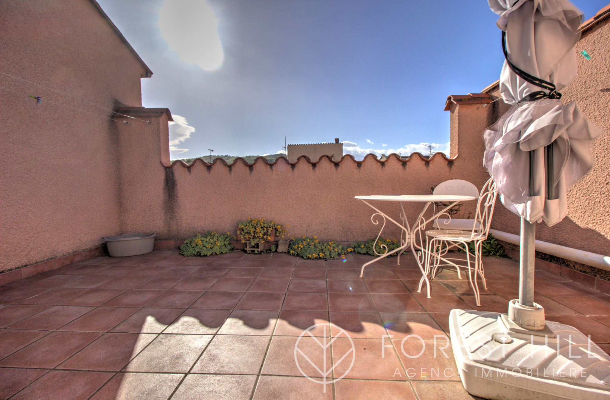 Au dernier étage, vous trouverez un appartement T1 indépendant offrant une chambre, une kitchenette, une salle d’eau et une agréable terrasse avec vue dégagée.