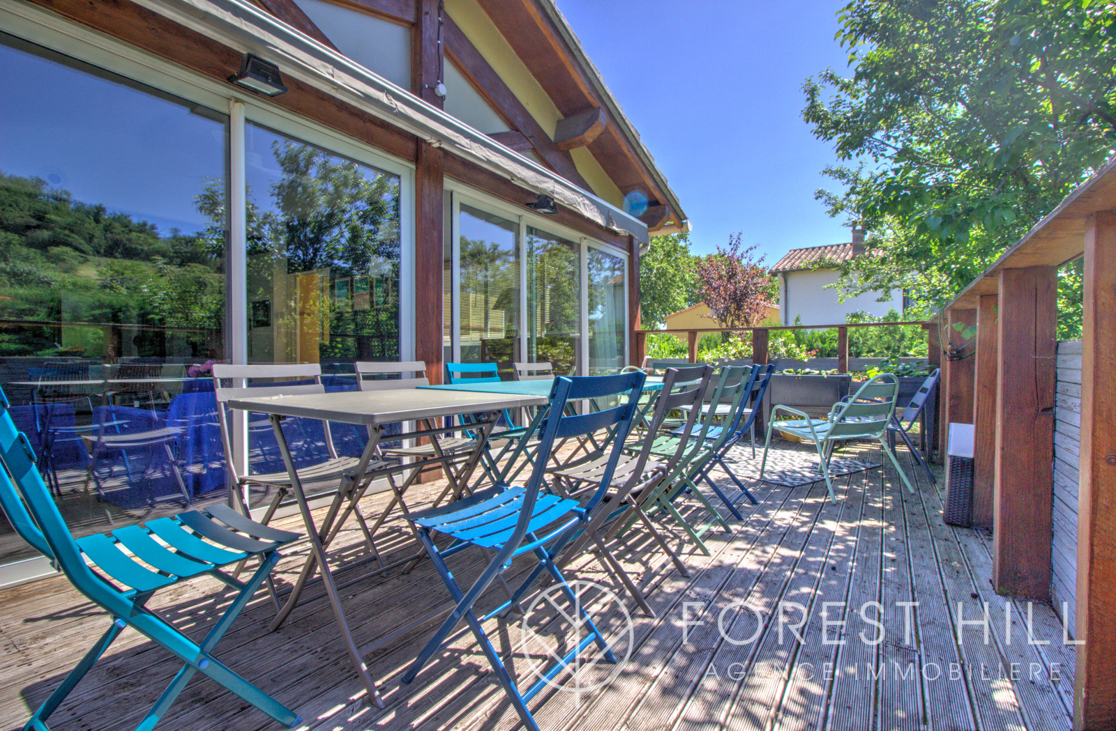 Le jardin arboré vous permettra de profiter pleinement de la piscine et de sa cuisine d’été. Un garage ainsi que des espaces de rangement viennent compléter les prestations de ce bien.