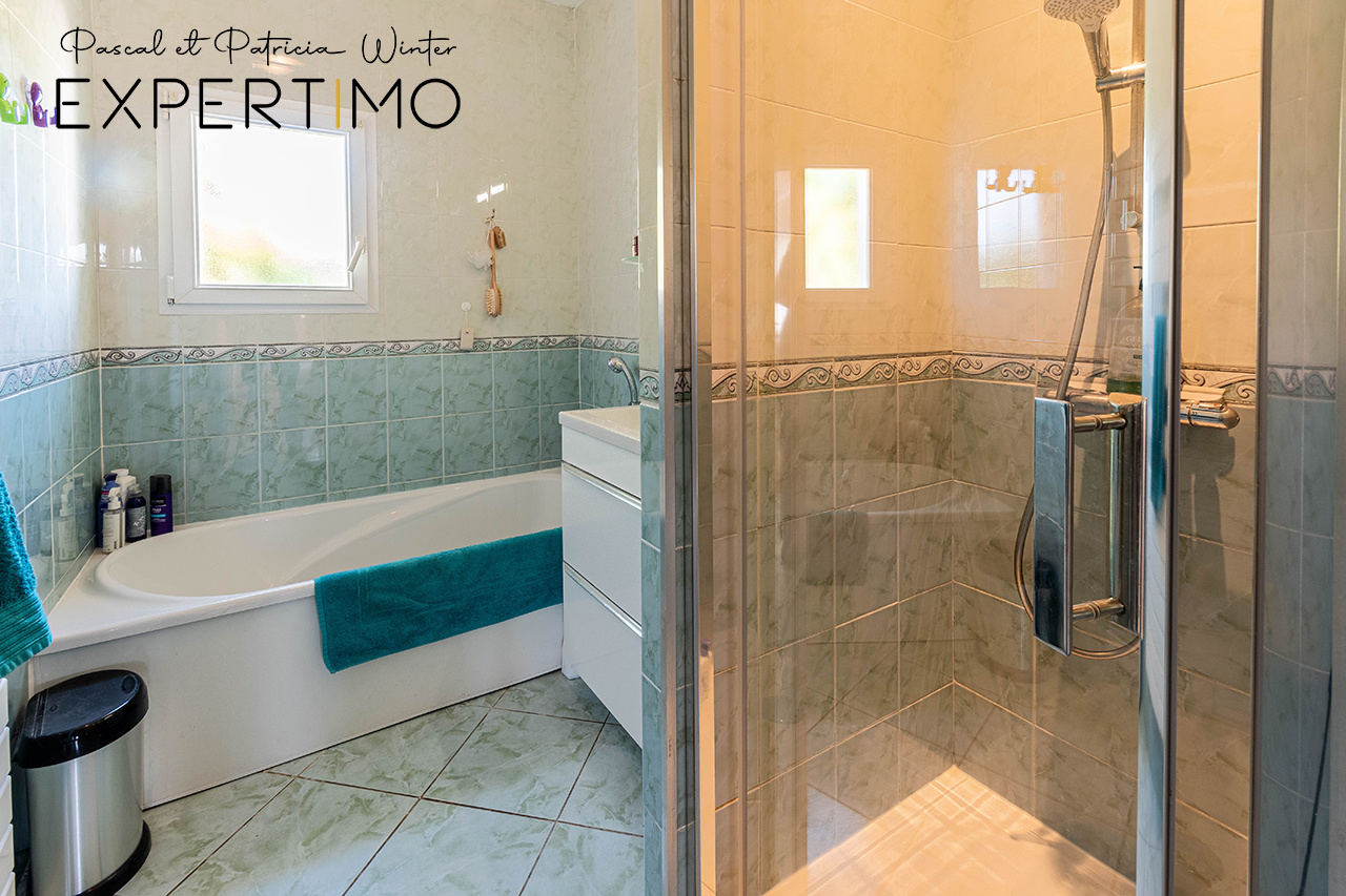 3 chambres dont 2 avec placard, 1 salle de bains avec douche et baignoire et 1 WC séparé et 1 terrasse extérieure.