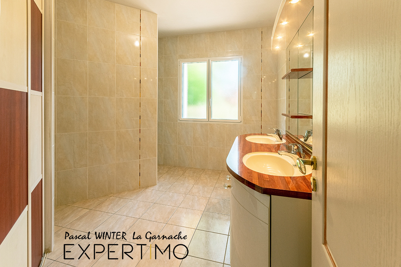 Puis le couloir distribue deux chambres, 1 bureau, 1 arrière cuisine, 1 magnifique salle d'eau, 2 WC séparés, 1salle de jeux de 24m² transformable très facilement en suite parentale, 1 buanderie, 1 garage de 26m² et une cave.