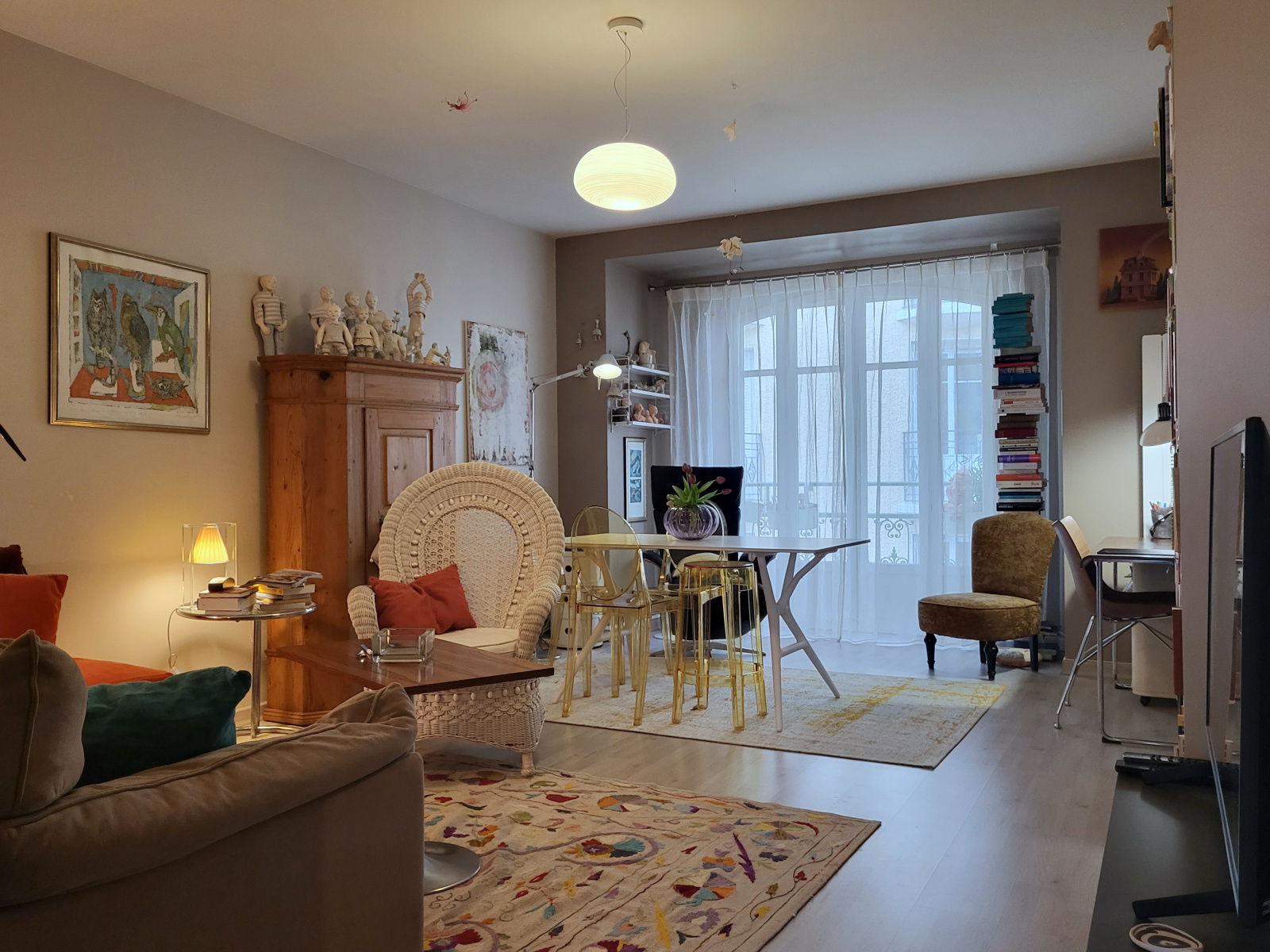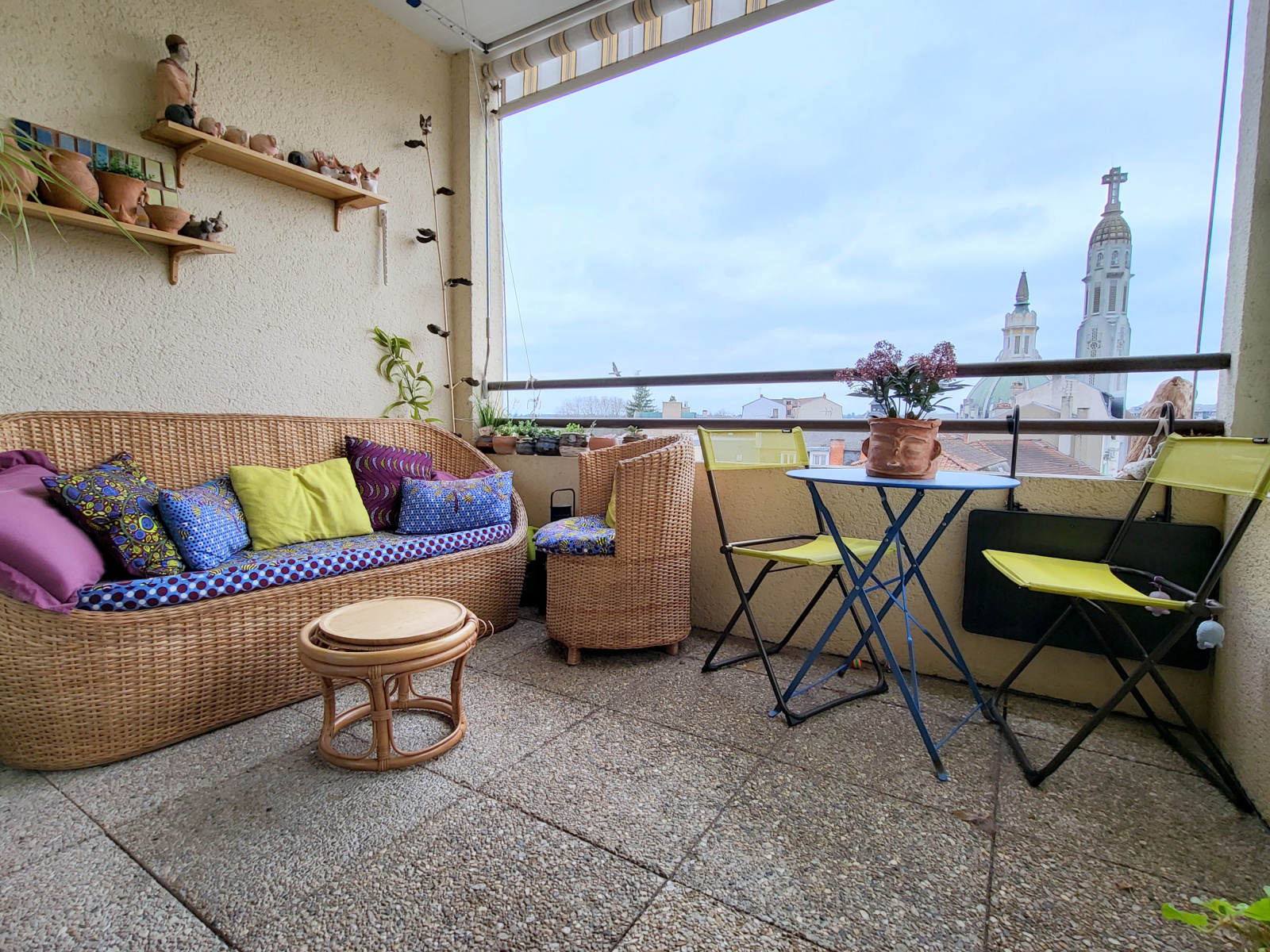 Dans le Vieux Vichy, quartier prisé de notre ville thermale, je vous propose au 4ème étage avec ascenseur dès le rez-de chaussée, un appartement T2 traversant de plus de 50 m2, rénové, dans une résidence Art Déco, sécurisée, calme, très bien entretenue. Vous disposez d'une pièce de vie de 23 m2 à l'est, d'une salle d'eau avec wc, d'une cuisine équipée, séparée, de plus de 8 m2 s'ouvrant sur une terrasse de près de 6 m2 avec vue sur l'Eglise St Blaise, les toits du Vieux Vichy. Vous profitez de la même vue de la chambre de plus de 9 m2 avec placard mural. L'entrée de 6 m2 est dotée de 2 placards muraux. Dans cette résidence, l'ascenseur descend jusqu'à la cave de plus de 6m2 de plus un local vélo est à votre diposition au rez-de chaussée. Informations importantes : Aucune anomalie sur l'installation électrique, absence d'amiante, DPE : D, repise possible de la location du grand garage situé dans la même rue : 60 euros par mois. N'hésitez pas à me contacter très rapidement au 06.23.76.25.44