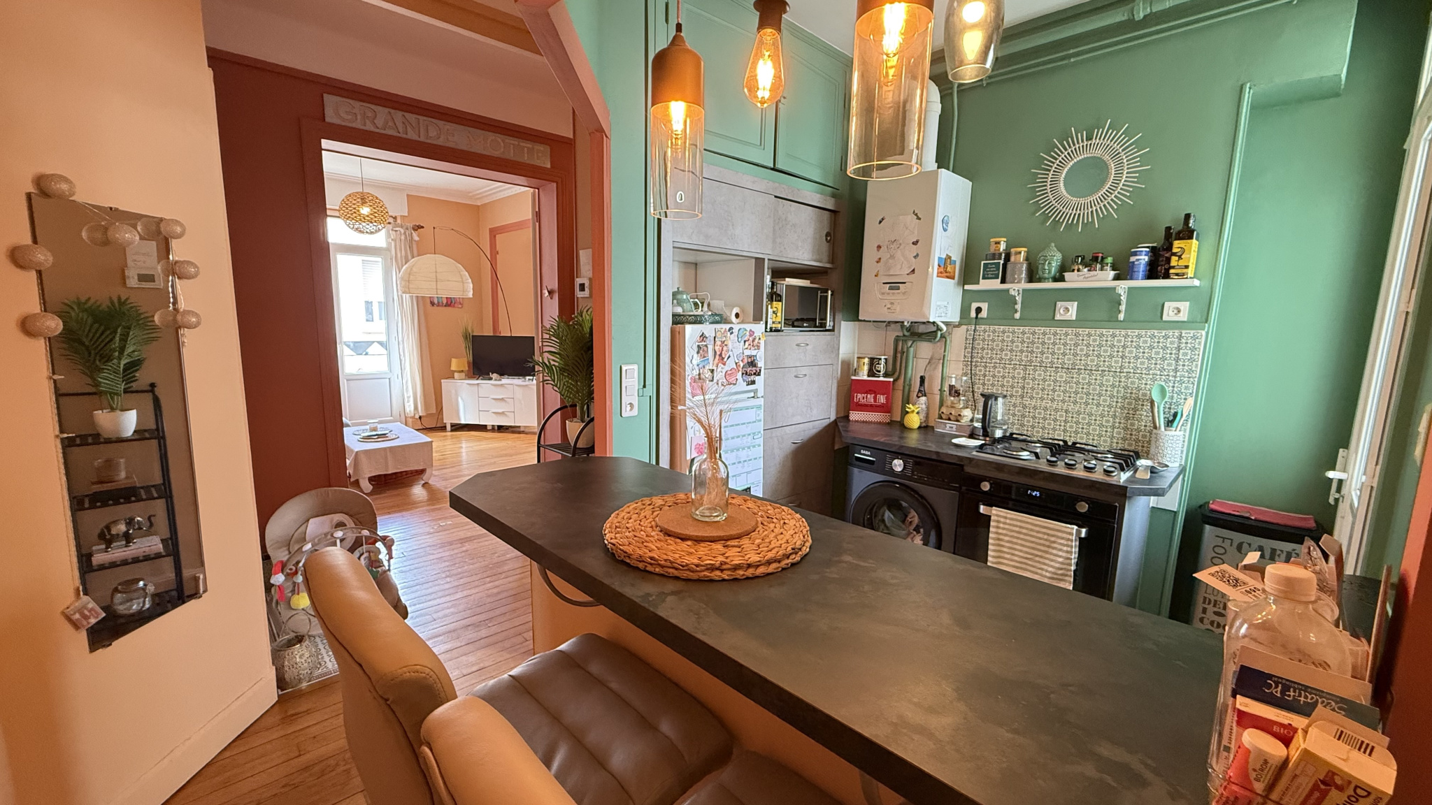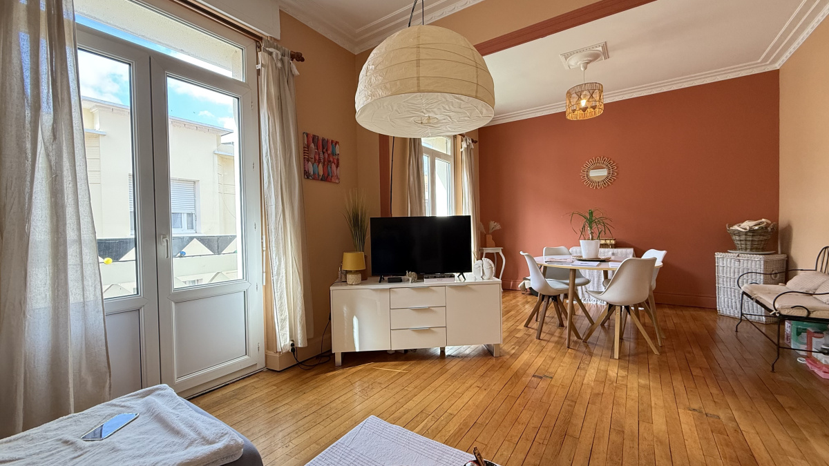 Les points forts : situation en centre-ville, petite copropriété, dernier étage, appartement en très bon état général, habitable de suite sans travaux, chauffage individuel au gaz de ville, double vitrage, charges mensuelles de 105 euros, possibilité de faire une 2ème chambre dans le double-séjour, balcon filant pour une table et 2 chaises, parking à proximité, assainissement tout à l'égout conforme, pas d'amiante, aucune anomalie électrique ni gaz.