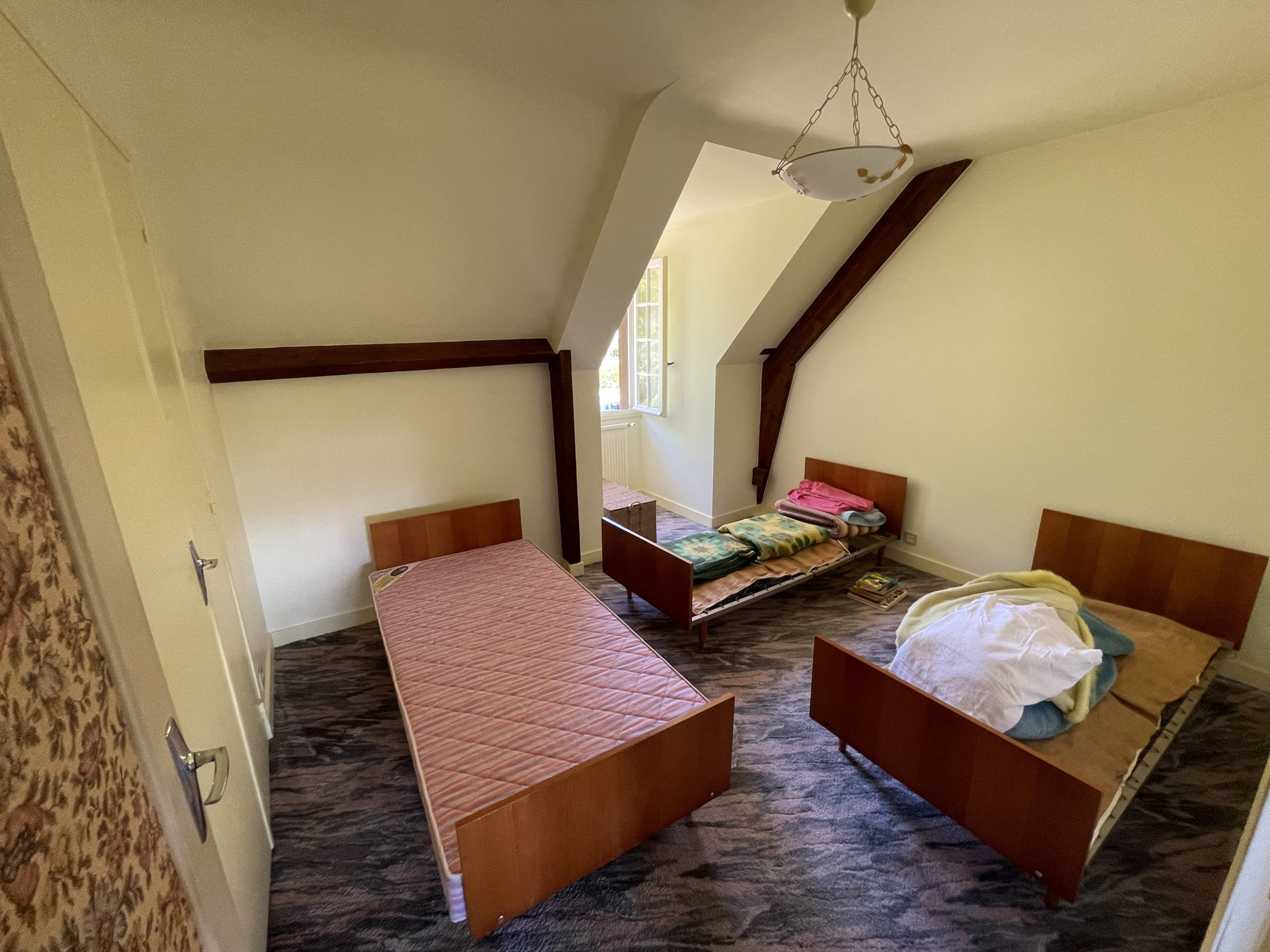A l'étage, 3 Chambres charmantes car mansardées, de 11 à 15 m2, une Salle de Bains et un WC. Grenier de rangements également.