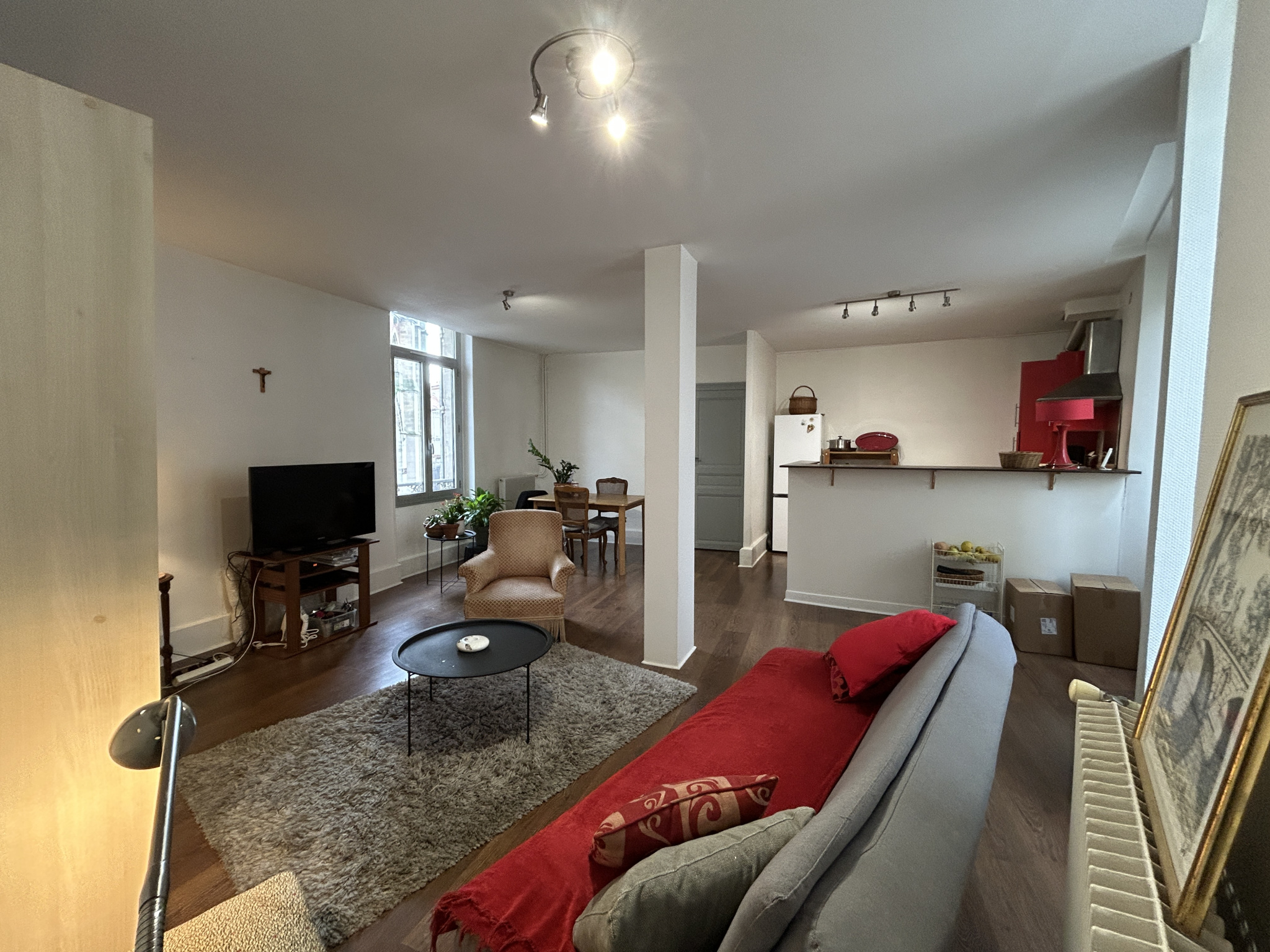 En centre ville d' Agen, appartement de 81.82 m2. Cet appartement lumineux, situé au premier étage d'une petite copropriété se compose d'une belle pièce de vie d'environ 35 m2 avec cuisine ouverte, de trois grandes chambres avec placards, d'une salle d'eau et d'un wc indépendant. L'appartement est climatisé, chauffage gaz (chaudière entretenue), double vitrage, cave, électricté aux normes. Les charges de copropriété sont de 38 € par mois. A visiter sans tarder !!!