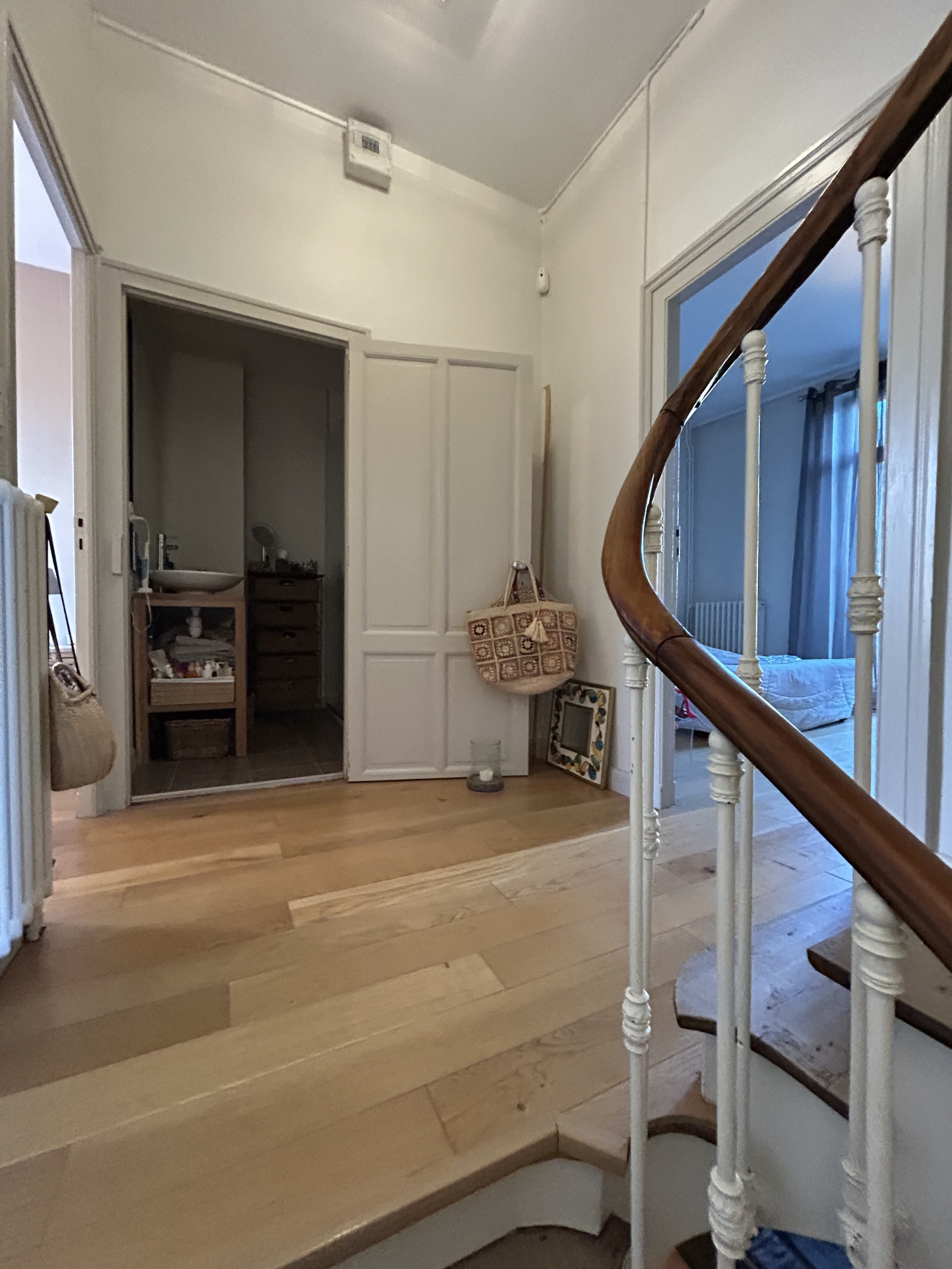 On aime les volumes, le parquet sur la totalité de la maison, la terrasse bois, les pièces de vie avec accès direct sur la terrasse.
