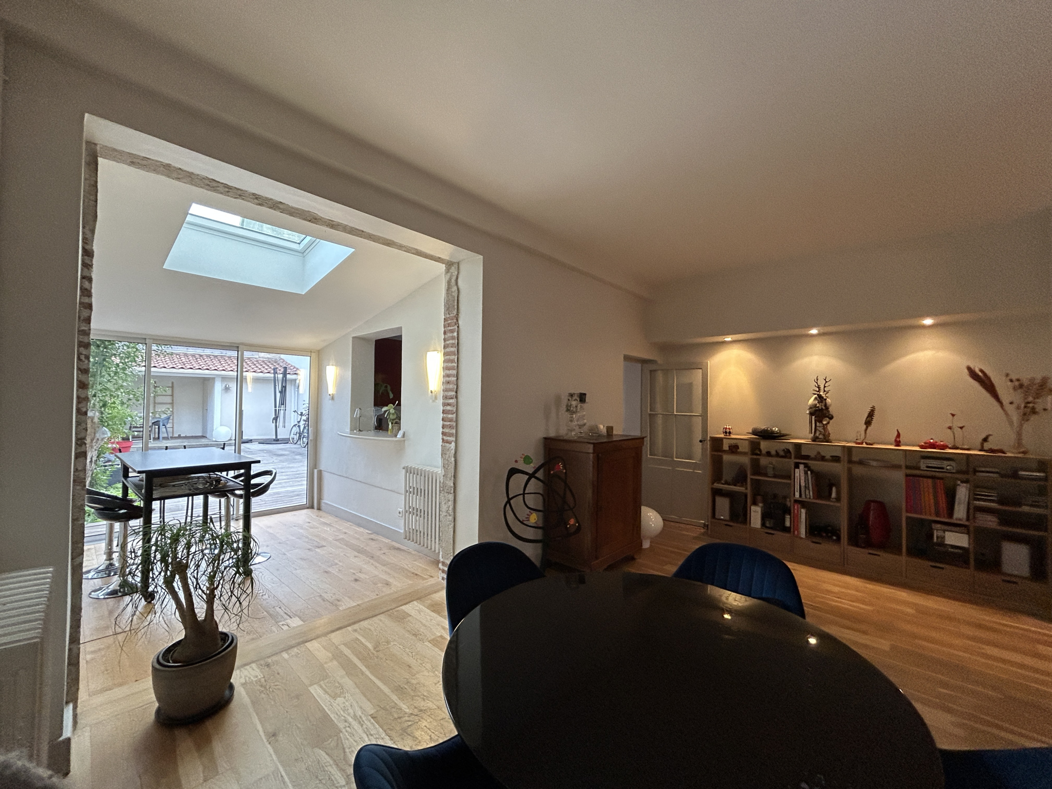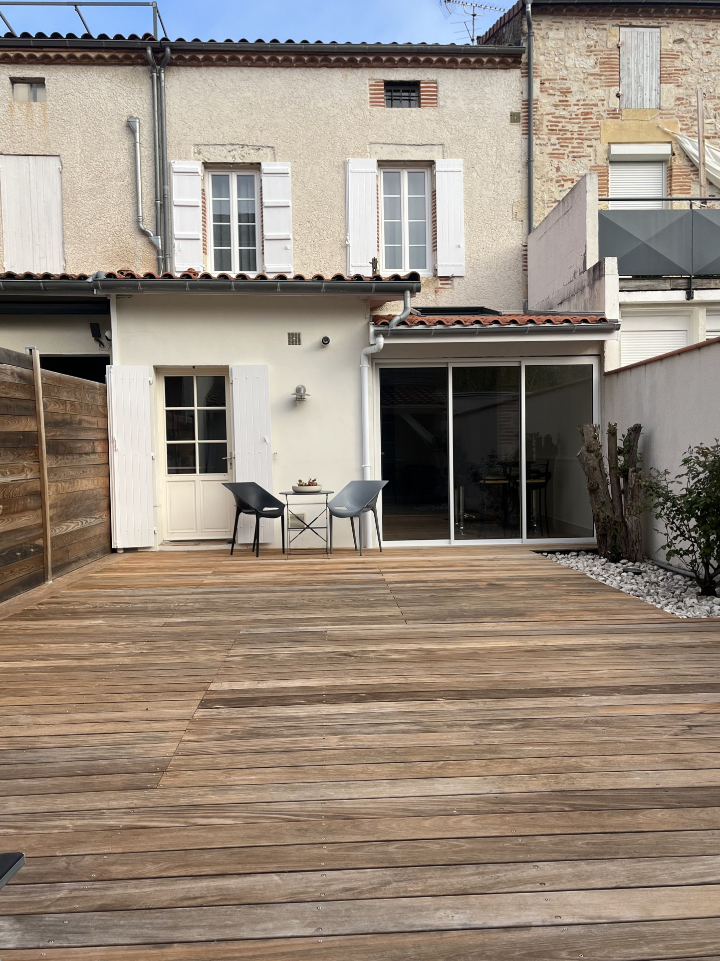 En Exclusivité ! En centre ville d'Agen, maison de 140 m2 habitables (et 10 m2 de surface utile) avec terrasse d'environ 50 M2 avec dépendance. Celle-ci se compose au rez de chaussée d'une superbe pièce de vie avec salon-séjour, coin réceptif et cuisine, ainsi qu'un wc indépendant. Au premier étage : deux très grandes chambres avec partie dressing et une salle d'eau. Au deuxième étage une grande chambre (pouvant etre divisée en deux chambres), un dressing, une salle de bains et un wc. Pour compléter le bien une cave. Coté extérieur : grande terrasse bois avec une dépendance faisant office de buanderie et un appenti.