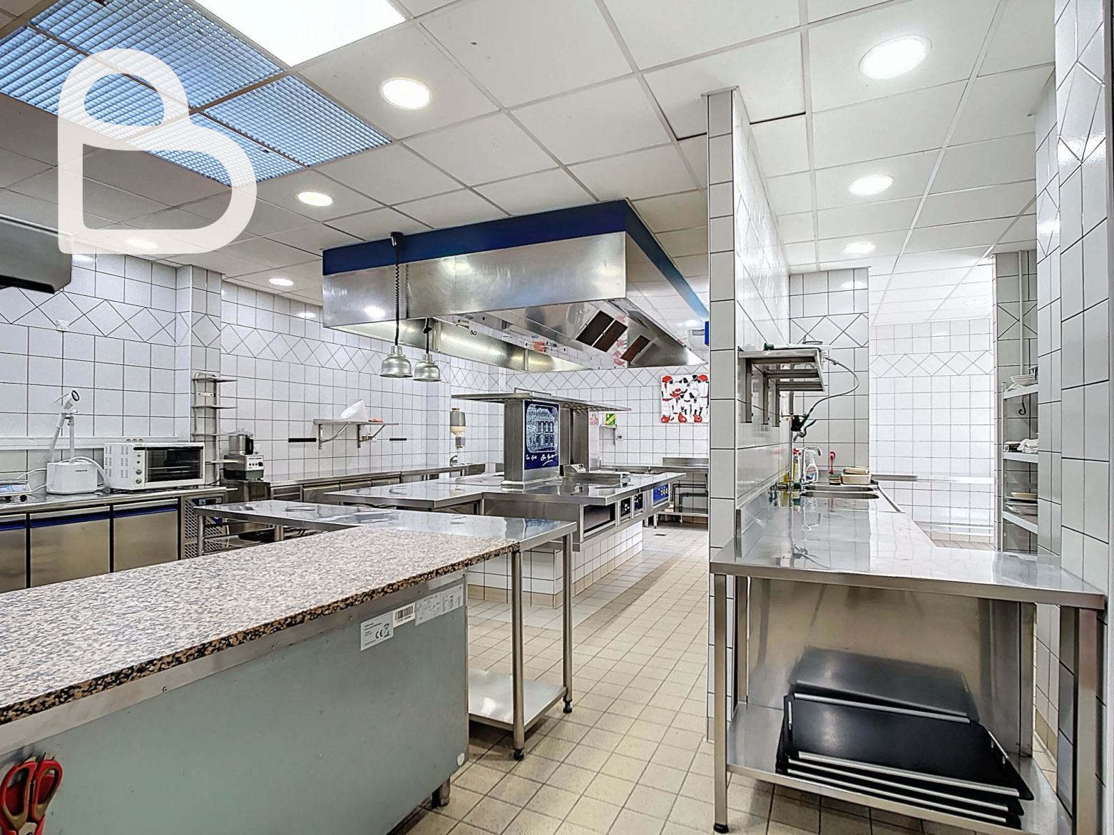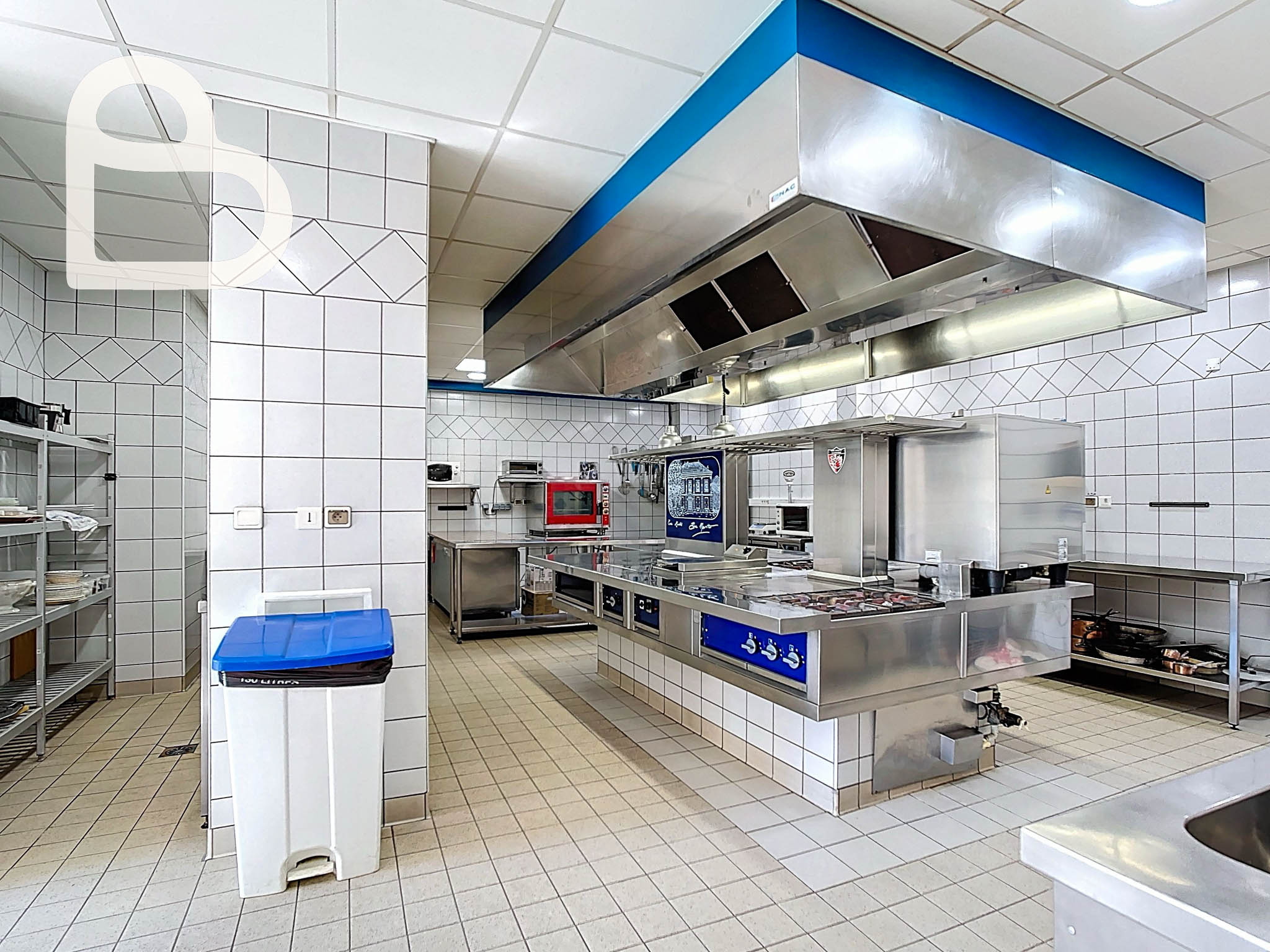 Au rez-de-chaussée se trouvent également une cuisine professionnelle entièrement équipée de 116 m², des vestiaires, une entrée indépendante pour le personnel et des sanitaires pour les clients. L’ensemble répond aux normes actuelles de sécurité incendie et d’accessibilité pour les personnes à mobilité réduite.