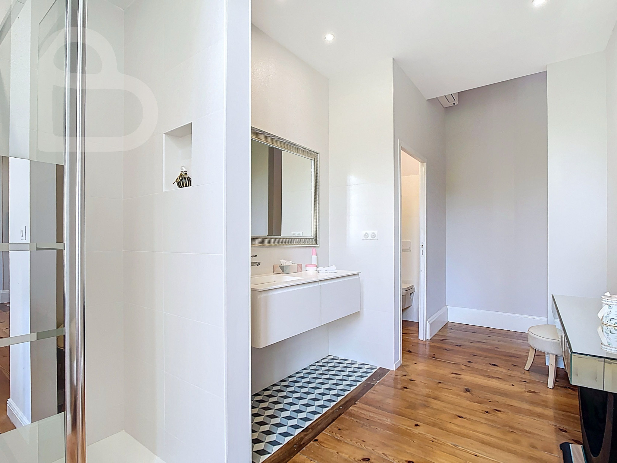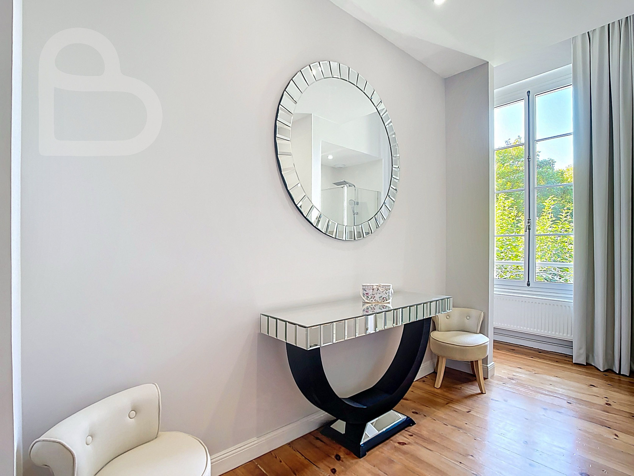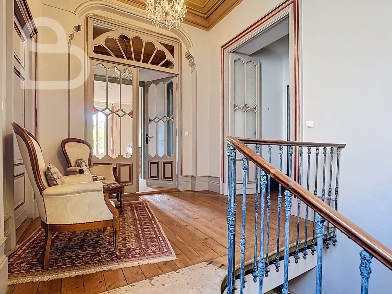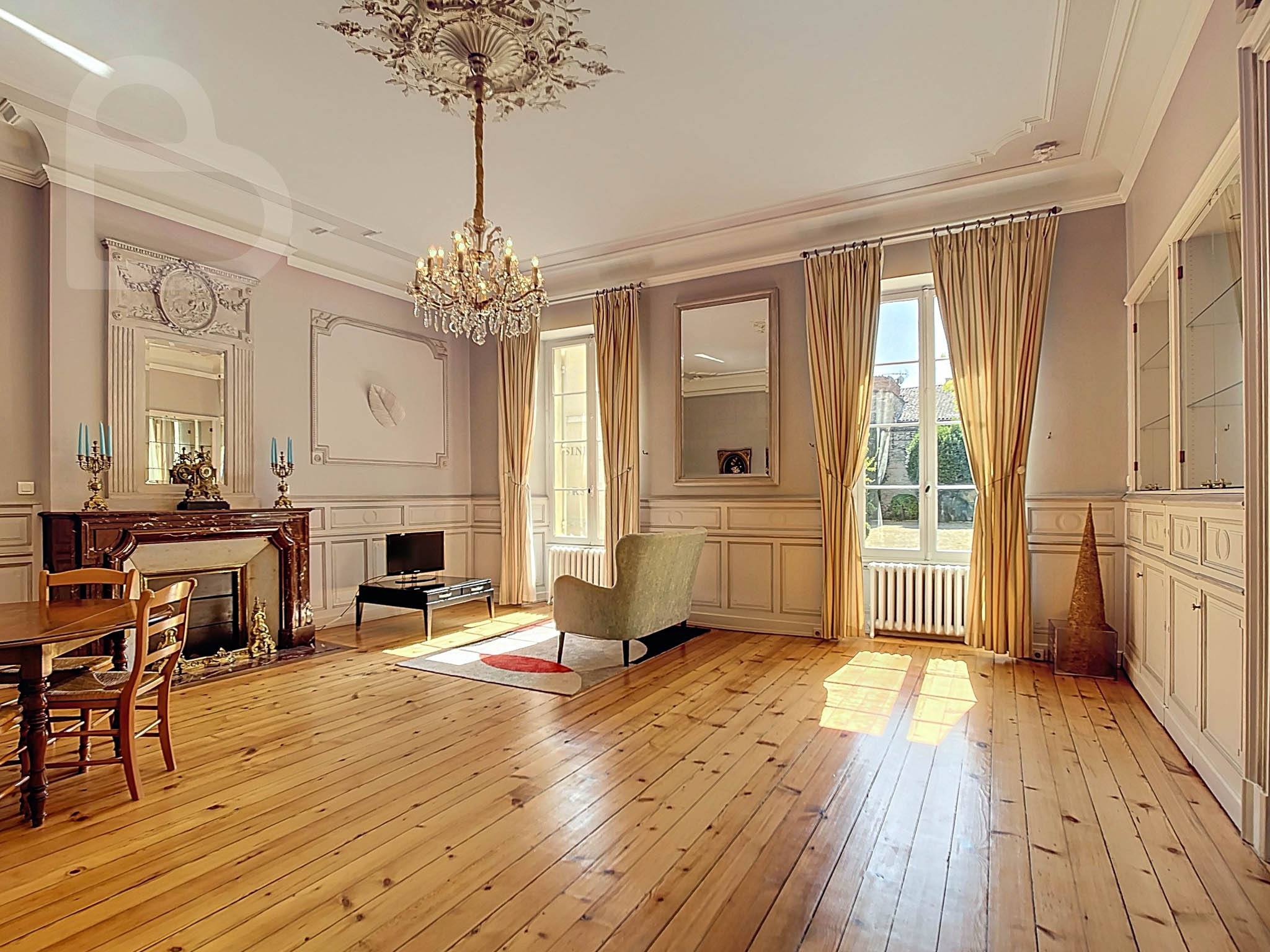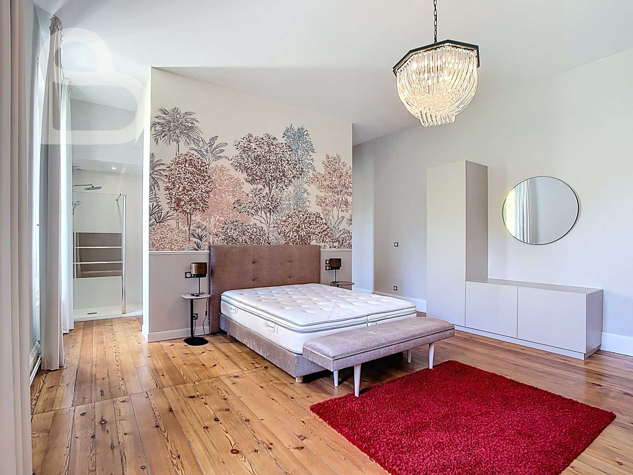 Cette demeure d’exception allie le charme intemporel au confort moderne. Derrière la majestueuse façade en pierre blanche de Bordeaux, vous découvrirez au rez-de-chaussée un hall d’entrée impressionnant et trois vastes salons climatisés et richement ornés. Parquets massifs, cheminées, boiseries authentiques, carreaux de ciment à motifs graphiques, hautes fenêtres en bois et plafonds décorés évoquent toute la splendeur de la Belle Époque.