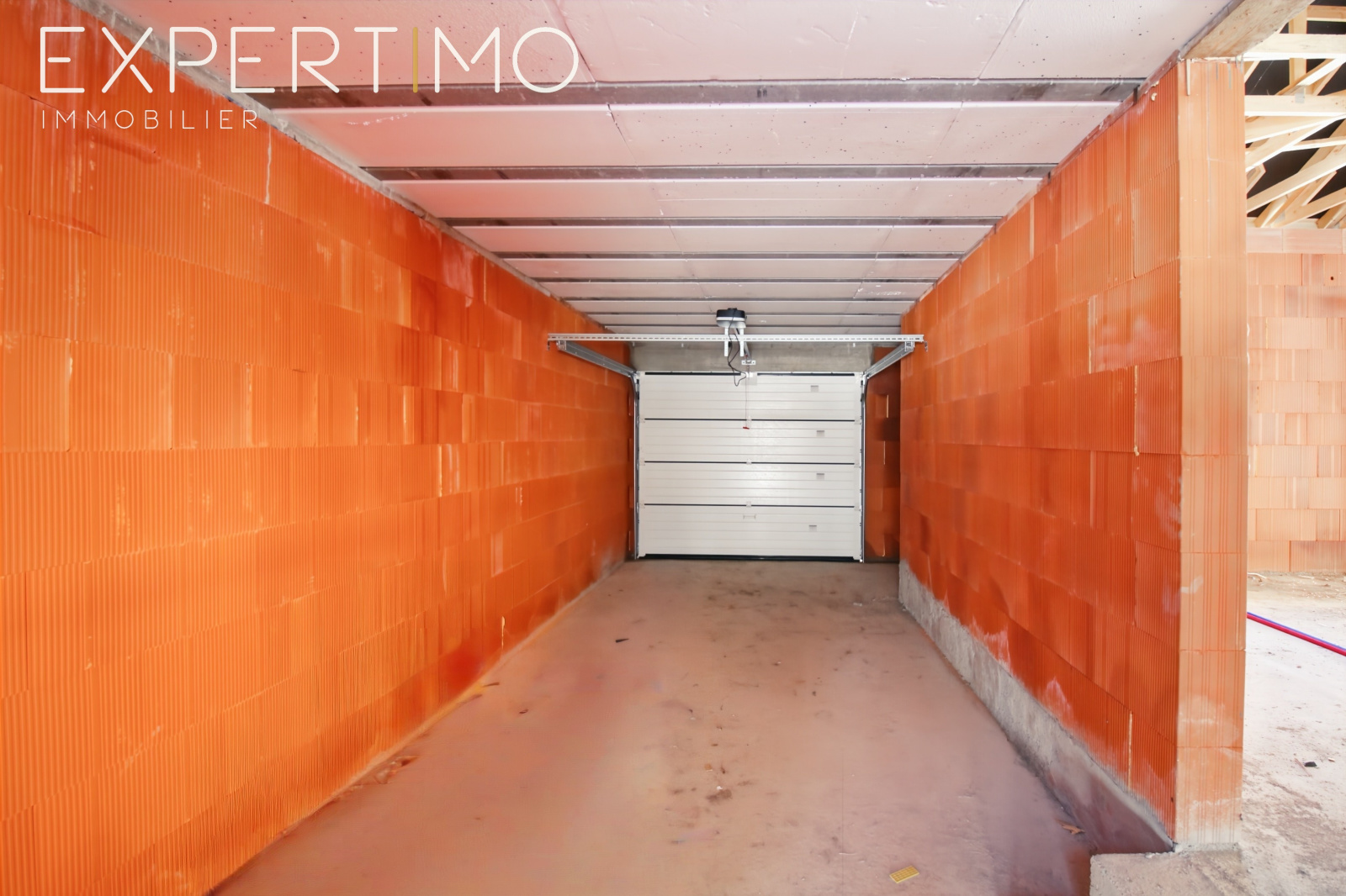 (Villas jumelées par les garages, construits en limite de propriété, pour optimiser la parcelle de terrain. Double murs et joint de dilatation).