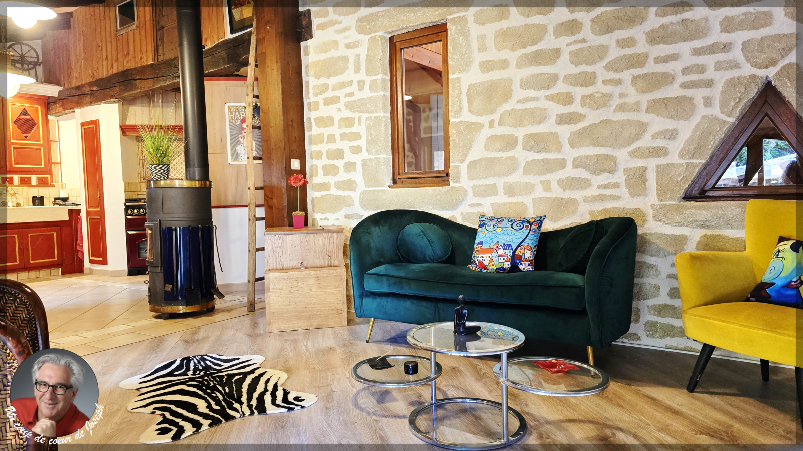 La seconde partie de la maison dispose d’une cuisine ouverte sur un salon avec poêle à bois ouvrant sur terrasse et jardin, d’un grand office/atelier et deux chambres dont une en mezzanine. Cette seconde partie est reliée intérieurement à la première partie mais elle dispose également d’accès indépendants, qui donne des possibilités d’accueil, chambre d’hôtes, famille…