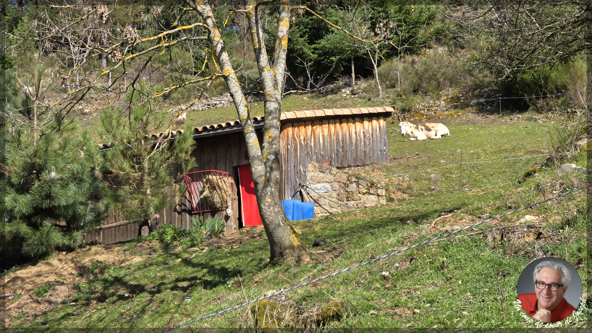 Les prés attenants avec une écurie et un tunnel de stockage, accueillent âne et cheval et renforcent le caractère rare et authentique du lieu.