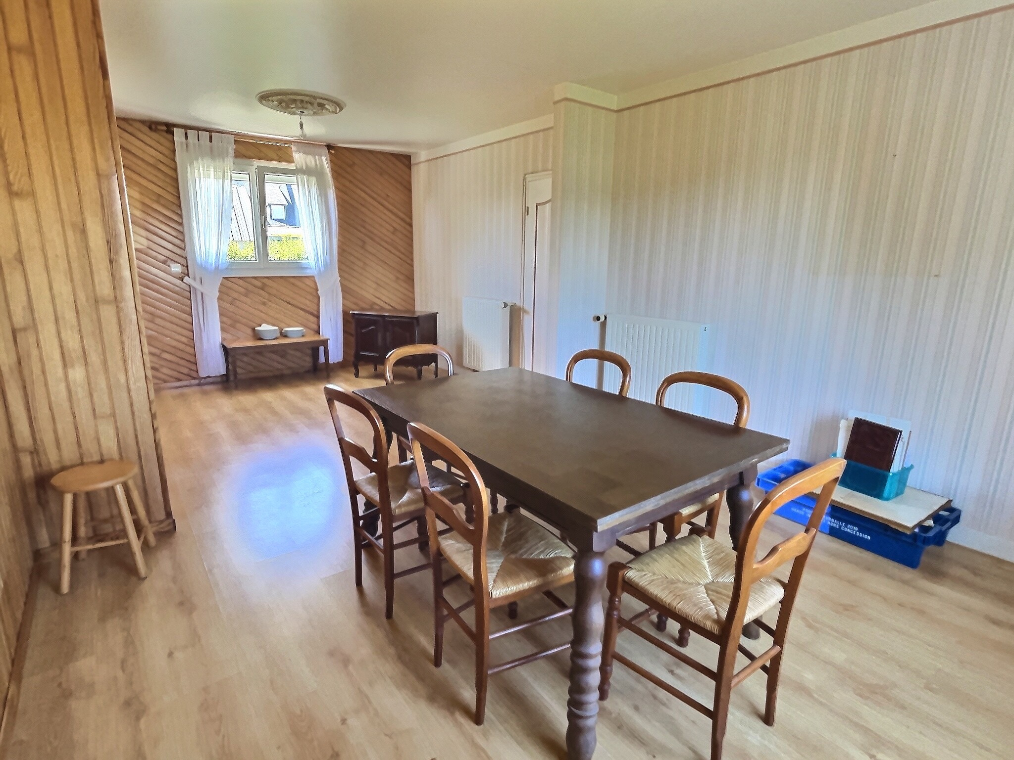 L’entrée se fait par une petite véranda menant à un hall desservant une cuisine séparée, un séjour, 2 chambres, une salle d’eau et un wc séparé A l’étage, découvrez deux chambres très spacieuses avec une vue magnifique sur la belle campagne. Chaudière au fuel. Annexe