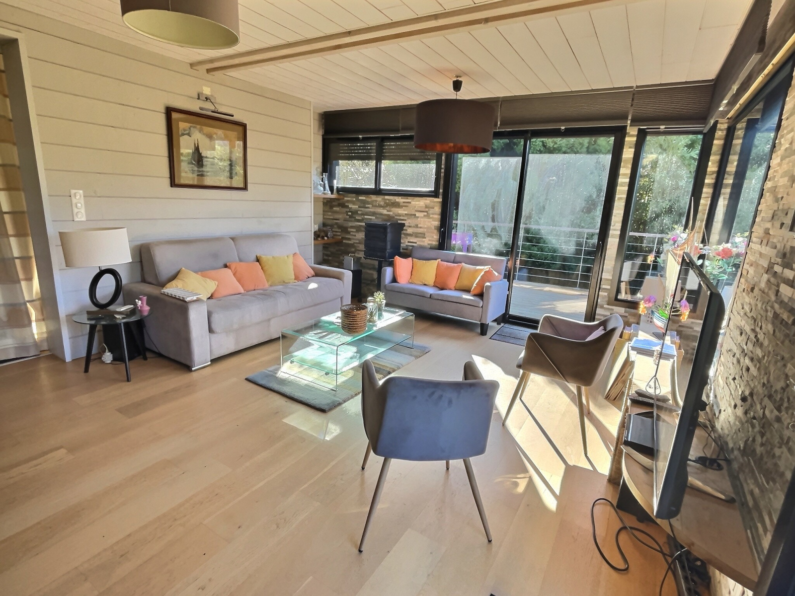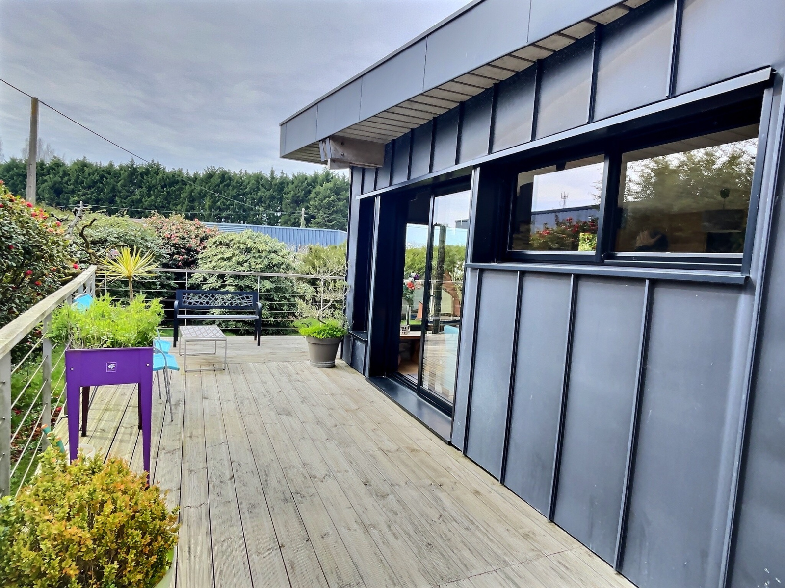 À la sortie de Concarneau, découvrez cette maison de 110 M2 exposée SUD- SUD OUEST nichée sur un beau terrain clos de 1 000 m², entouré de verdure.. Son extension contemporaine en bois et zinc, baignée de lumière, apporte une véritable plus-value et une belle ouverture sur l’extérieur.