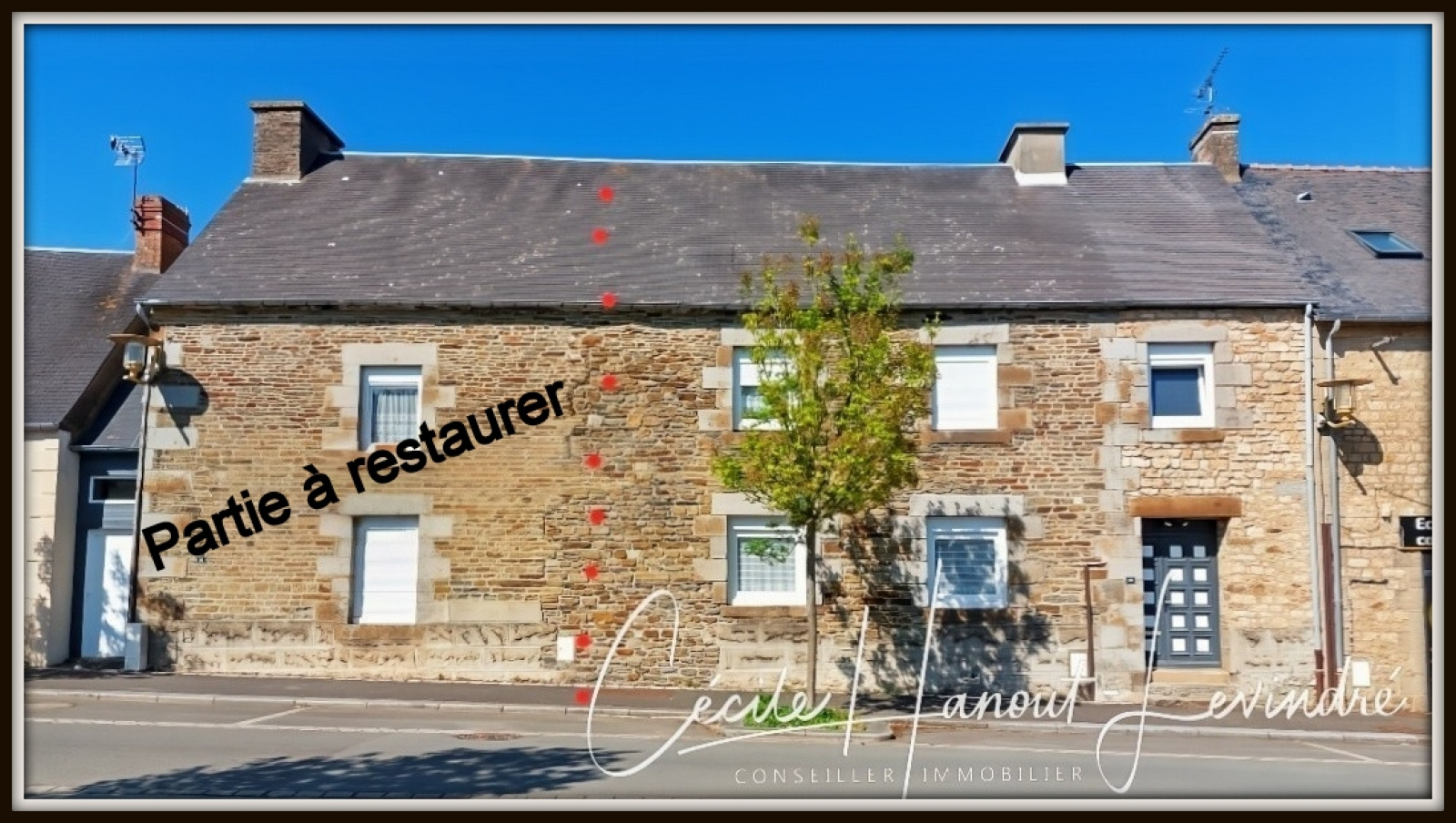 En plein coeur du village de Pleine-Fougères, à proximité immédiate des écoles, des commerces et du centre de santé, et à seulement 15 minutes du Mont-Saint-Michel, et 35 minutes de Saint-Malo, cet ensemble immobilier comprend une maison d'habitation de 100 m² avec trois chambres, une dépendance en pierre attenante de 74 m² avec cheminée à restaurer, une cour et un grand garage en pierre de 37 m².