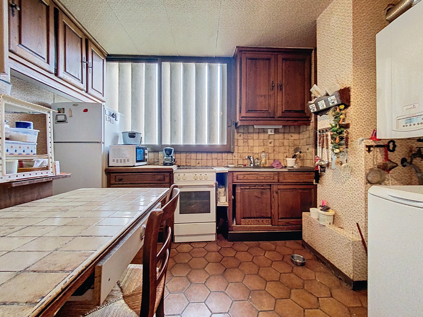 La cuisine indépendante est aménagée et dispose d’un bel espace de travail.