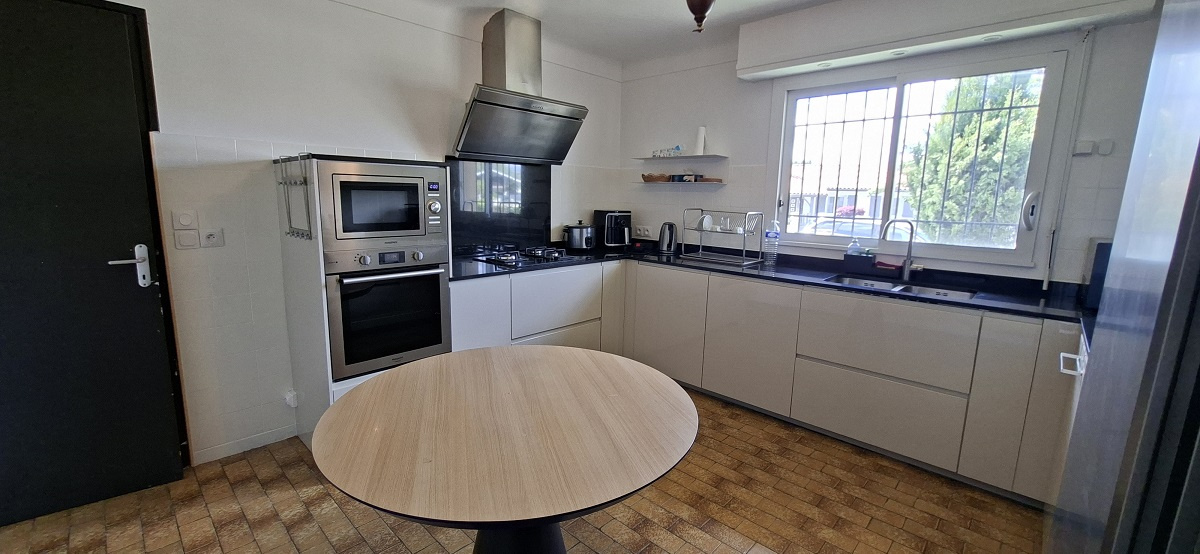 Elle comprend 4 chambres (2 à l'étage, 2 en rdc), 2 salles d'eau, 2wc, une très belle cuisine neuve, et une pièce de vie lumineuse et très agréable avec ses 3 expositions différentes !