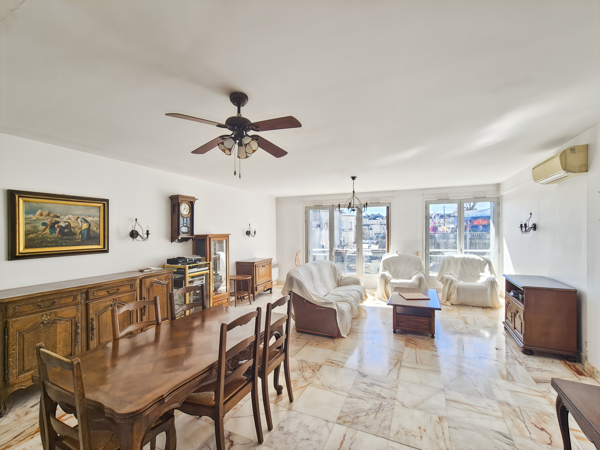 En centre-ville d’Auch (Place du Foirail), au 6ème étage (sur 7) d’une résidence de standing sécurisée avec ascenseur, venez découvrir ce magnifique appartement de type 4 d’une superficie de 121m2 avec balcon de 20m2. L’appartement se compose d’une entrée avec un grand couloir/dégagement et de nombreux rangements fonctionnels, d’une buanderie/cellier, d’un grand salon séjour lumineux de 40m2, d’une cuisine récemment rénovée et équipée (Réfrigérateur-congélateur/four/plaque induction/lave-vaisselle/hotte), de 2 WC, de 2 salles de bains et de 3 grandes chambres. Un balcon en L de 20m2 complète le bien. Climatisation réversible, DPE classé D, aucune anomalie électrique, pas de travaux à prévoir.