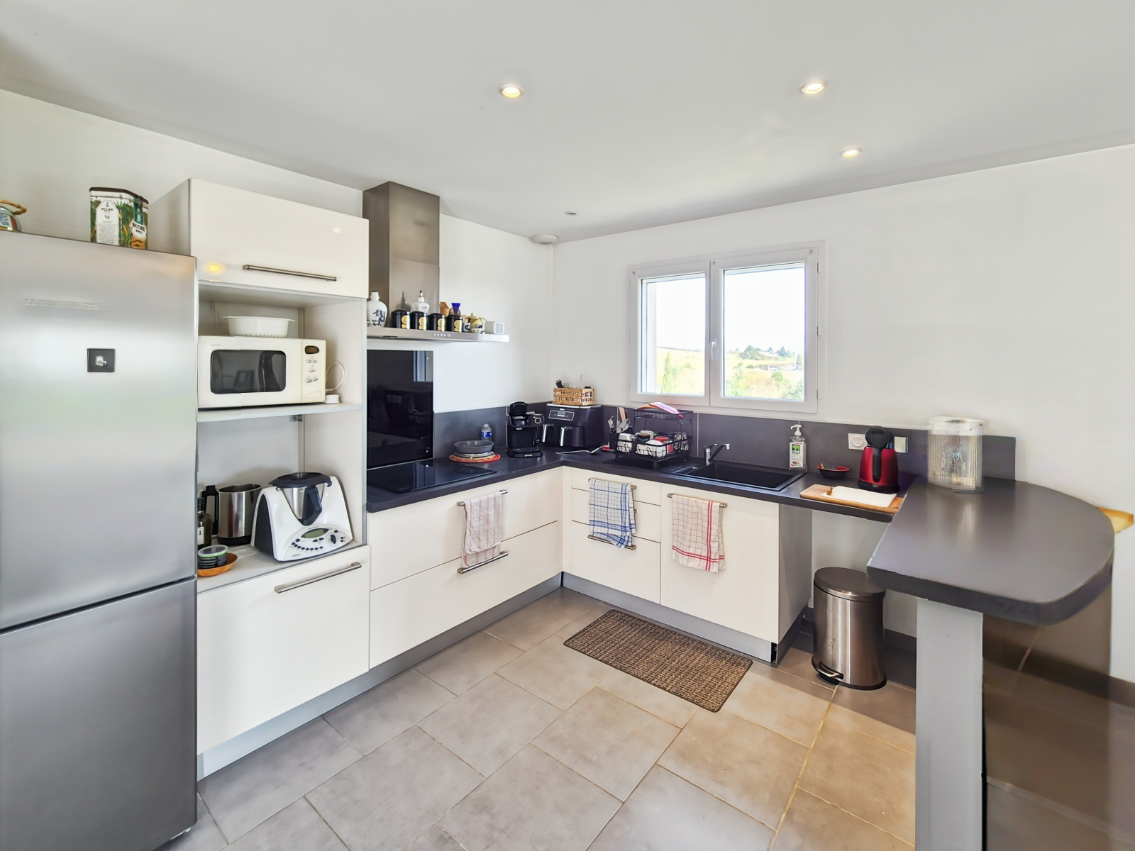 La maison se compose d’une grande pièce de vie avec cuisine semi-équipée ouverte sur le salon/séjour pour plus de 40m2. La partie nuit comprend 2 chambres avec rangements, une salle d’eau avec douche à l’italienne, une buanderie et un WC séparé. A l’extérieur, vous pourrez profiter d’un jardin plat et entièrement clos de 200m2, d’une terrasse couverte avec une vue dégagée, d’un garage ainsi que d’un carport.