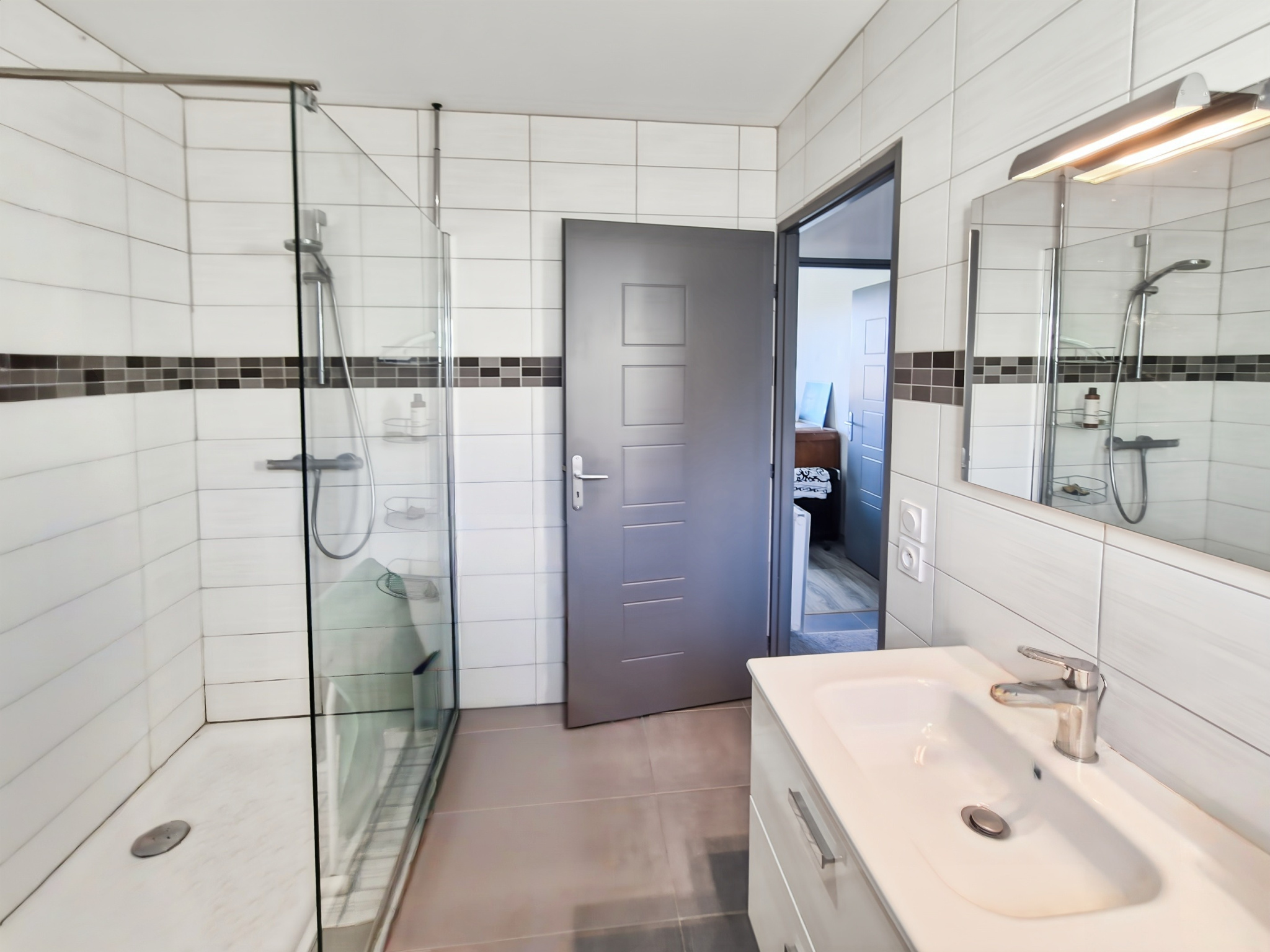 Maison fonctionnelle par excellence, moderne avec un excellent DPE et une très faible consommation énergétique, aux normes PMR, menuiseries PVC et ALU double vitrage, volets roulants électriques, VMC double flux, chauffe-eau thermodynamique, poêle à bois et radiateurs électriques.
