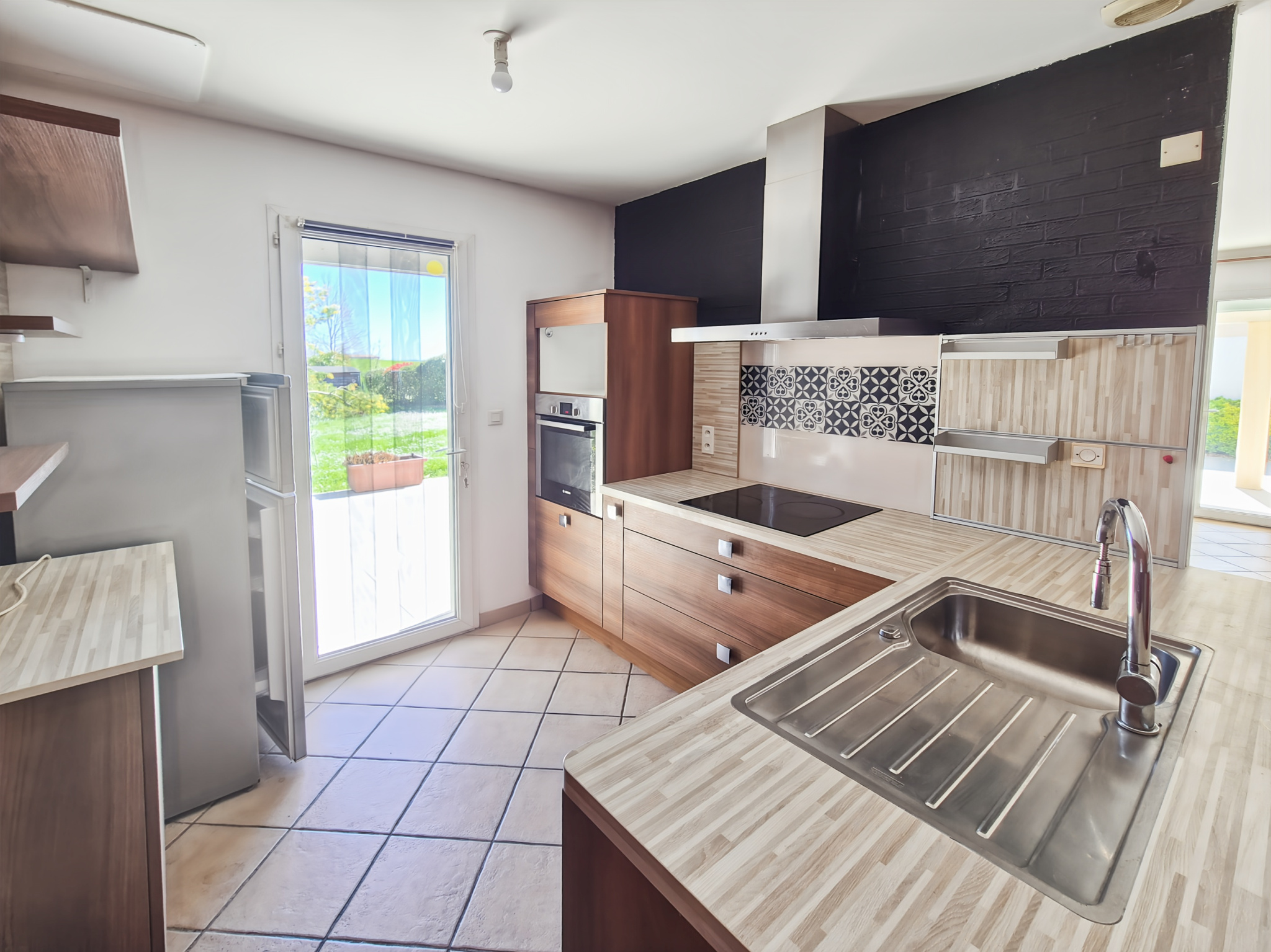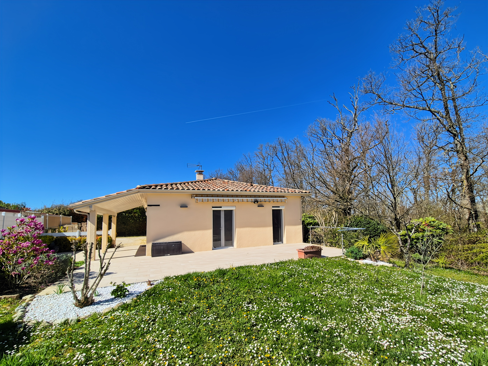 A l’ouest d’Auch, en campagne, venez découvrir cette villa T4 de 87m2 de plain-pied avec garage et jardin, édifiée dans les années 2000 sur une parcelle de 848m2. La maison se compose d’une entrée donnant sur le salon et la cuisine équipée semi ouverte. Un couloir dessert les 3 chambres (avec rangements), la salle de bains avec baignoire et douche ainsi qu’un WC séparés. Le garage est accessible depuis la maison avec un espace buanderie fonctionnel. A l’extérieur, vous pourrez profiter d’une cour gravillonnée permettant de stationner plusieurs véhicules, de deux terrasses carrelées (une couverte de 15m2 et une de 40m2) et d’un jardin plat et arboré d’environ 500m2. Parcelle clôturée sur 3 côtés. Côté technique : excellent DPE classé C, menuiseries double vitrage PVC + volets roulants solaires, tout à l’égout, VMC hygroréglable, combles isolés, système de chauffage radiateurs électriques + poêle à bois, aucune anomalie électriques, portail d’entrée électrique, tour de maison avec trottoirs carrelés, belles prestations. Taxe foncière 1700€.