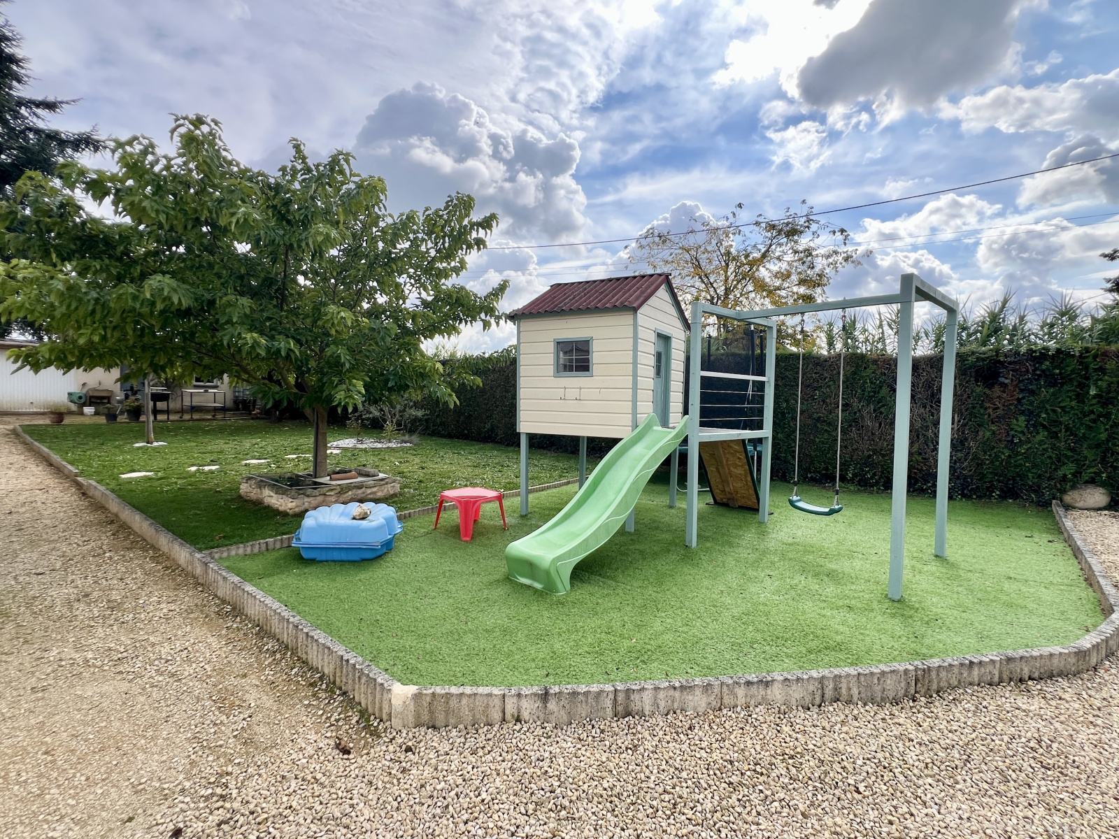 La piscine semi enterrée avec abri vous permettra de profiter de l'agréable espace extérieur qui comprend également un atelier et un poulailler.
