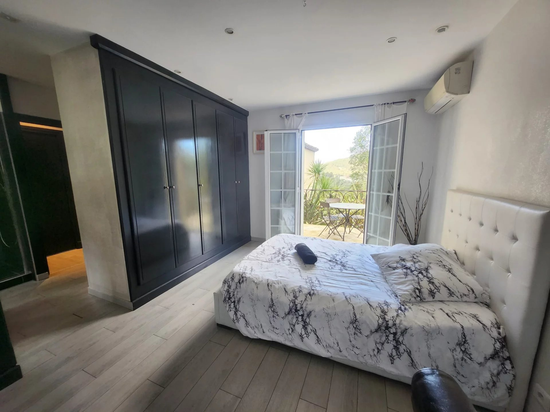 Une superbe piscine trône sur une immense terrasse dont la vue exceptionnelle ne vous laissera pas indifferent.Â