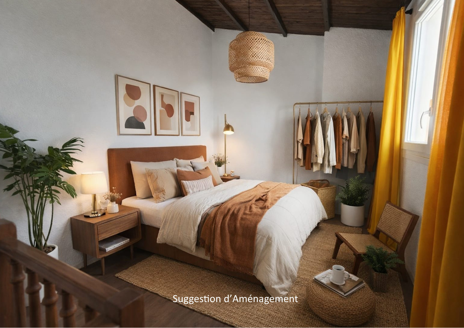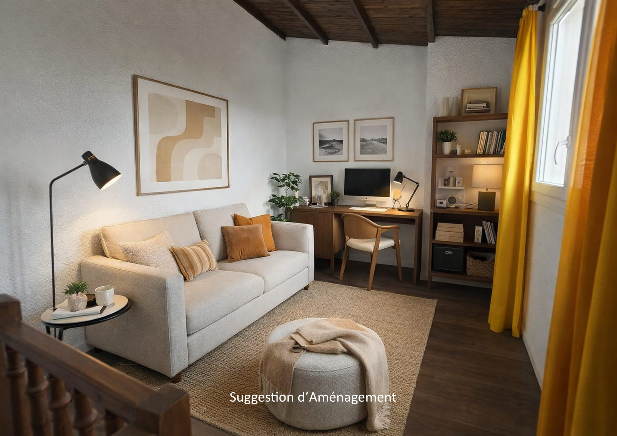 A l'étage, un niveau partiel offre une très jolie vue sur les collines environnantes. Cet espace pourra accueillir une 3ème chambre, ou un bureau, idéal pour le télétravail.